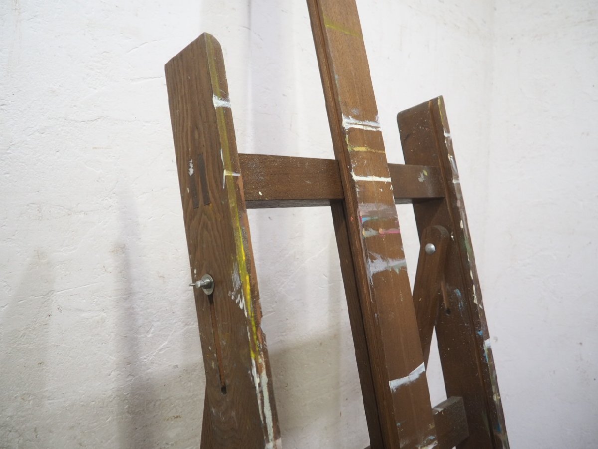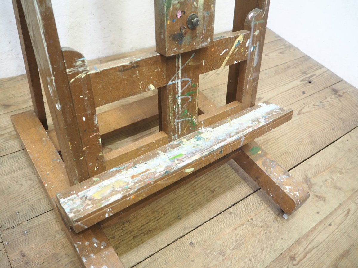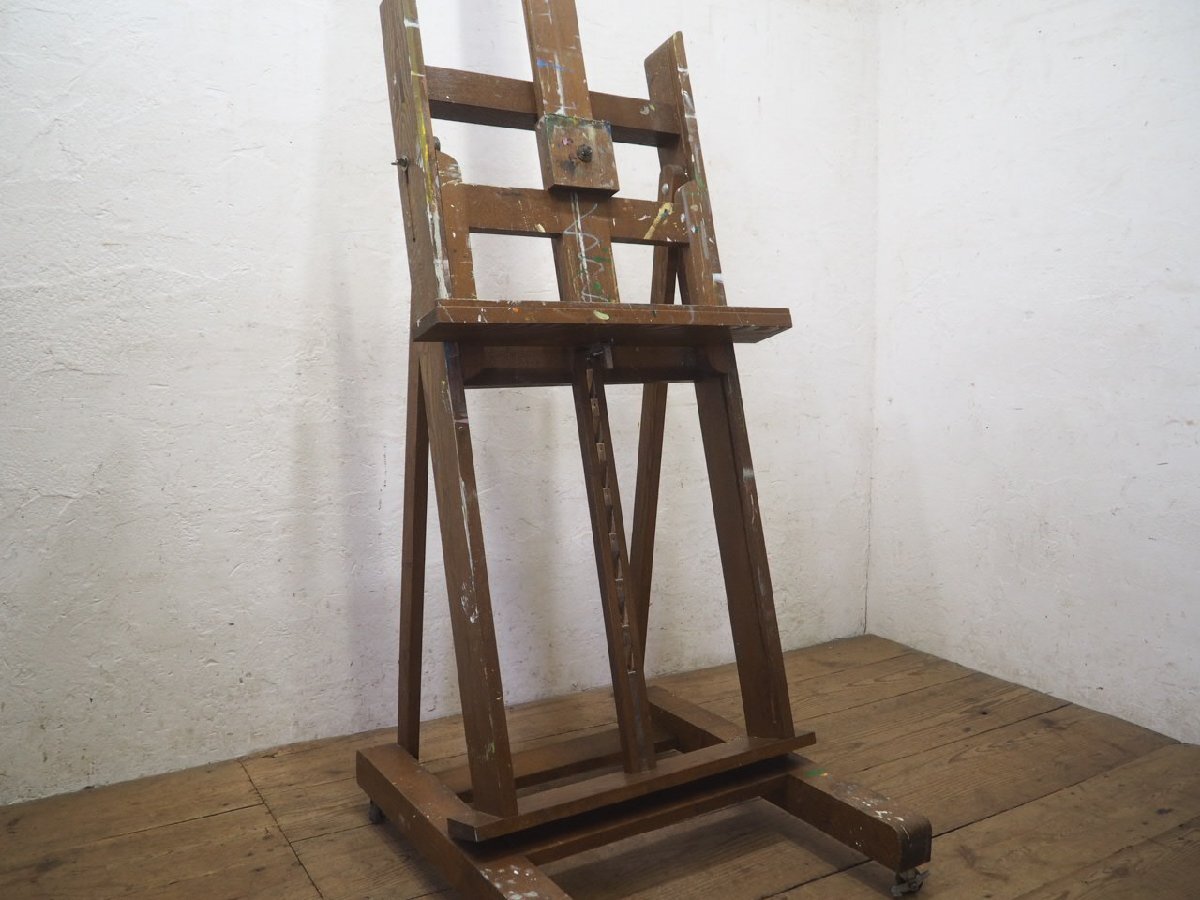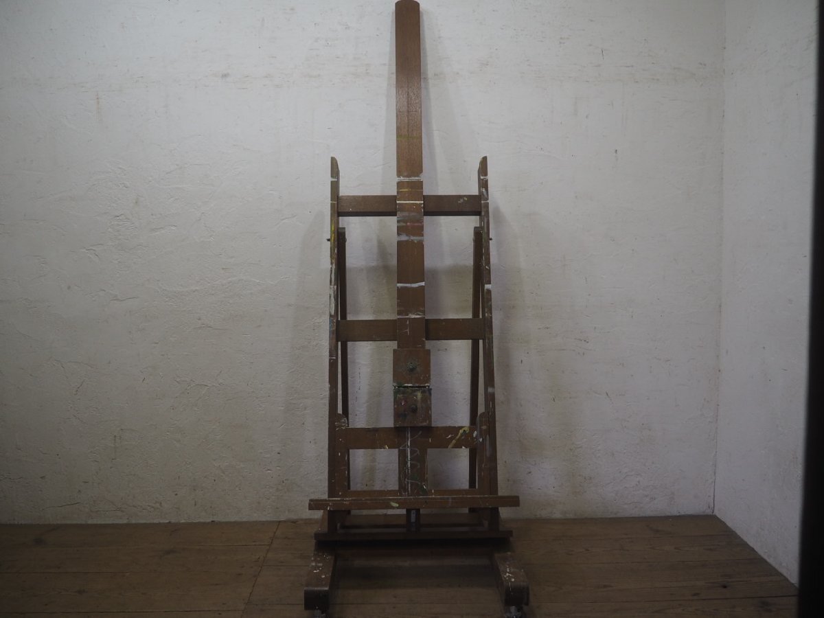 タ荷P0528◆H202~274Hcm◆ビンテージ◆特大◆キャスター付きの大きい木製イーゼル◆大型 画材 絵画 油絵 メニューボード レトロV(ヤF)松