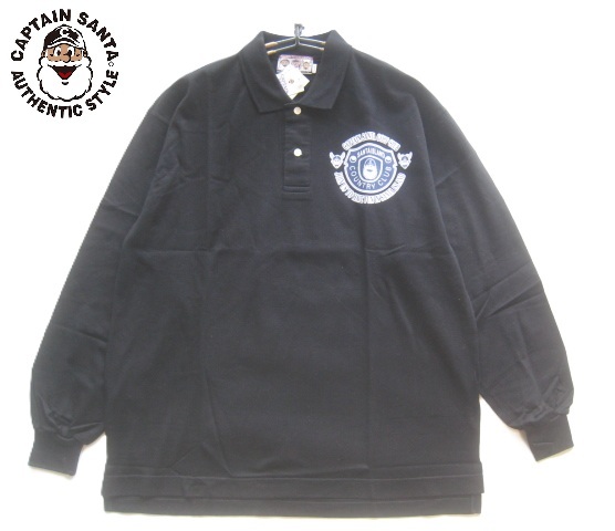 新品!!キャプテンサンタ Captain Santa*ビッグロゴプリント 長袖ポロシャツ L 黒 ブラック ジョイマークデザイン