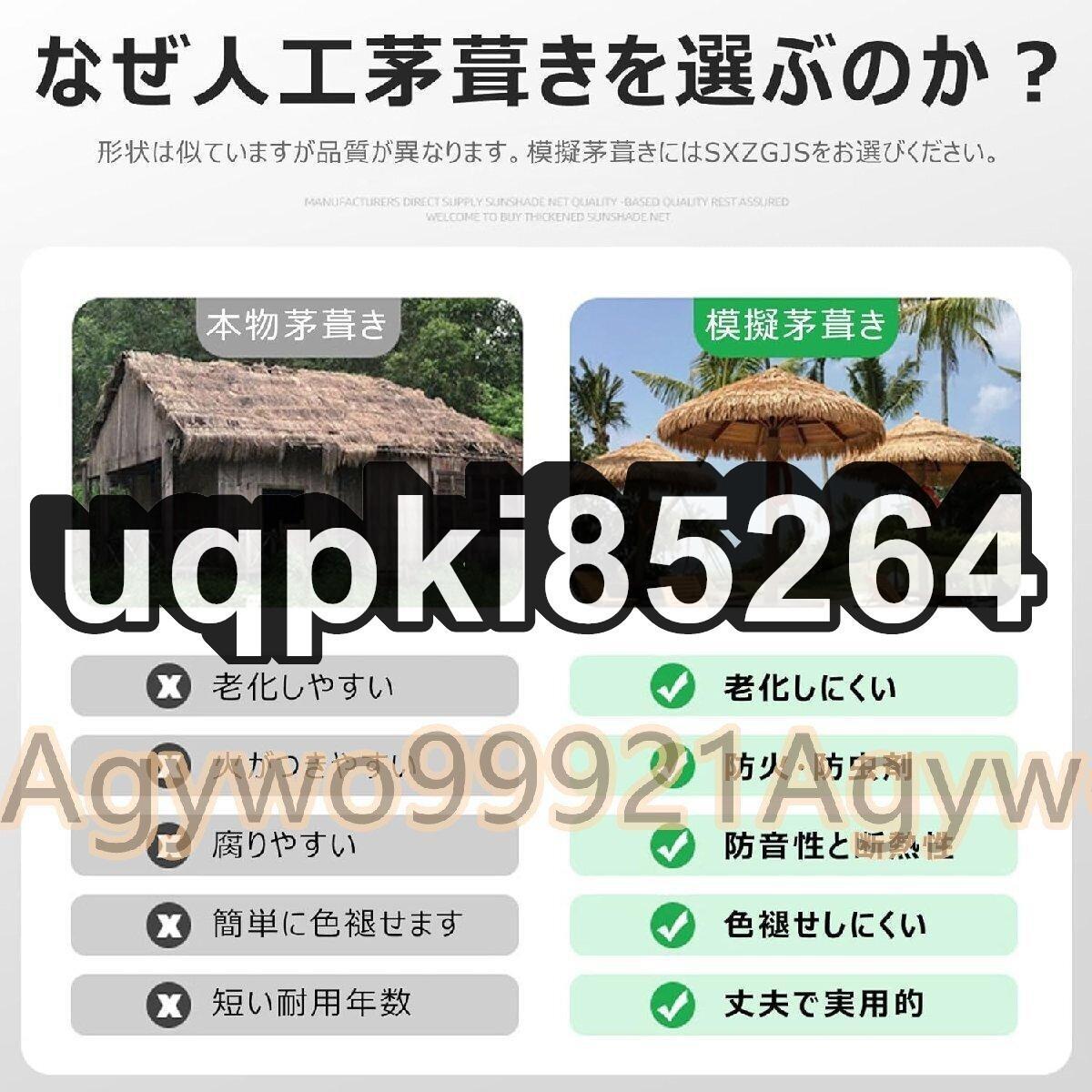 ★状態:新品未使用 【人工茅葺き屋根】:人工サッチは合成PE素材でできており、防雨性、難燃性、良好な自然光があり、クリアでリアルなラインを備えています。 全体として、模擬茅葺き屋根は、住宅および商業ビルに見た目が美しく安全な屋根のオプションを提供します。 【難燃性茅葺きルーフロール】:合成茅葺きは通常、難燃性素材で作られており、発火しにくく、炎の広がりを遅らせます。 この機能により、天然茅葺き屋根に比べて火災のリスクが大幅に軽減されるため、住宅所有者に安心感を与えます。 【サイズと測定方法】:サッチロールのサイズは幅1メートルで、簡単に取り付けられます。 1 メートルから 15 メートルまでの長さがあるため、購入する必要がある数量を正確に測定して決定することができ、プロジェクトに効率的なソリューションを提供します。 寸法を測って注文するだけで、カスタマイズ可能なサッチロールの利点をお楽しみいただけます。 【多目的】: サッチロールは多用途で、さまざまな場所や環境で使用できます。 パティオの屋根、ティキ小屋、ガゼボ、トロピカルをテーマにしたバーやレストランなどの屋外または屋内の装飾によく使用されます。 本物の外観は、ビーチをテーマにしたパーティー、イベント、結婚式に暖かく居心地の良い雰囲気を作り出します。 【暖かいヒント】:人工芝ルーフロールを受け取った後、芝生を起こして表面を再びふわふわにし、3~5日間乾燥させるか、熊手で茅をとかして毛羽立ちを早めてください。 ---------- 防水・耐火人工茅葺き PE サッチ ロールは、さまざまな環境で自然なトロピカルな外観を作成するための人気の選択肢となっています。 主な特徴としては、耐火性、耐紫外線性、耐候性が挙げられ、耐久性と寿命が保証されます。 さらに、メンテナンスや維持管理も最小限で済むため、天然の茅葺きの代替品となります。 これらのボリュームのリアルなデザインと質感は、あらゆる環境にリアリズム感を加え、魅力的でエキゾチックな雰囲気を作り出します。 仕様: 商品名:模擬茅葺き - 素材: プラスチックPE素材 - 色: 黄色 - 幅: 1m - 長さ: 1m - 50m (他のサイズもカスタマイズ可能) 特徴: - PE模造茅葺きタイルは防水性、耐火性、安全性があります。 - 雨から守るための屋根の屋根板またはパーゴラ上の屋根板として。 ●1m×1m(幅×長さ) 重量:1.62kg。 ●お好みの柄を切り抜くことができます。 - この人工茅葺屋根は難燃性が高く、防火等級:B1です。 - 人工茅葺屋根なので冬は暖かく、夏は涼しく過ごせます。 ・天然芝のように定期的なメンテナンスや交換の必要がなく、より安全です。