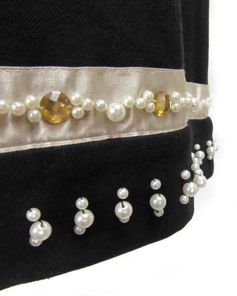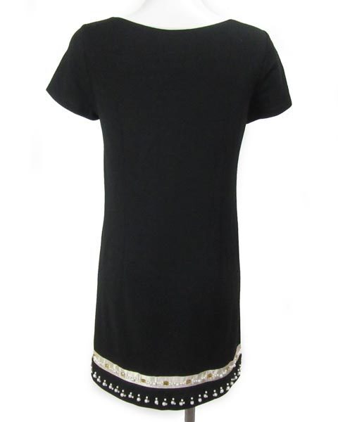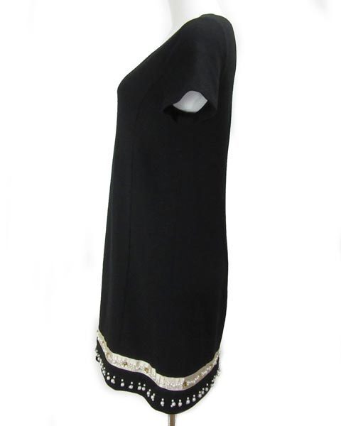 | クイーンズコート 黒 裾 ビジュー 半袖 ワンピース 2 |