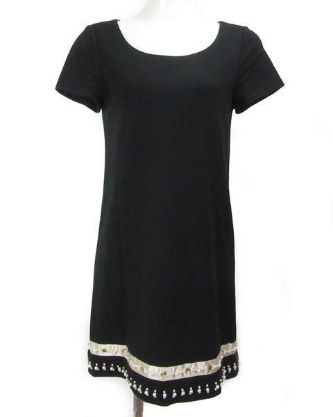 | 裾のビジューが華やかなワンピース。普段使いからちょっとしたパーティーまでお使い頂けます。ストンとした流行に左右されないデザインなので、長く着て頂けます。 |