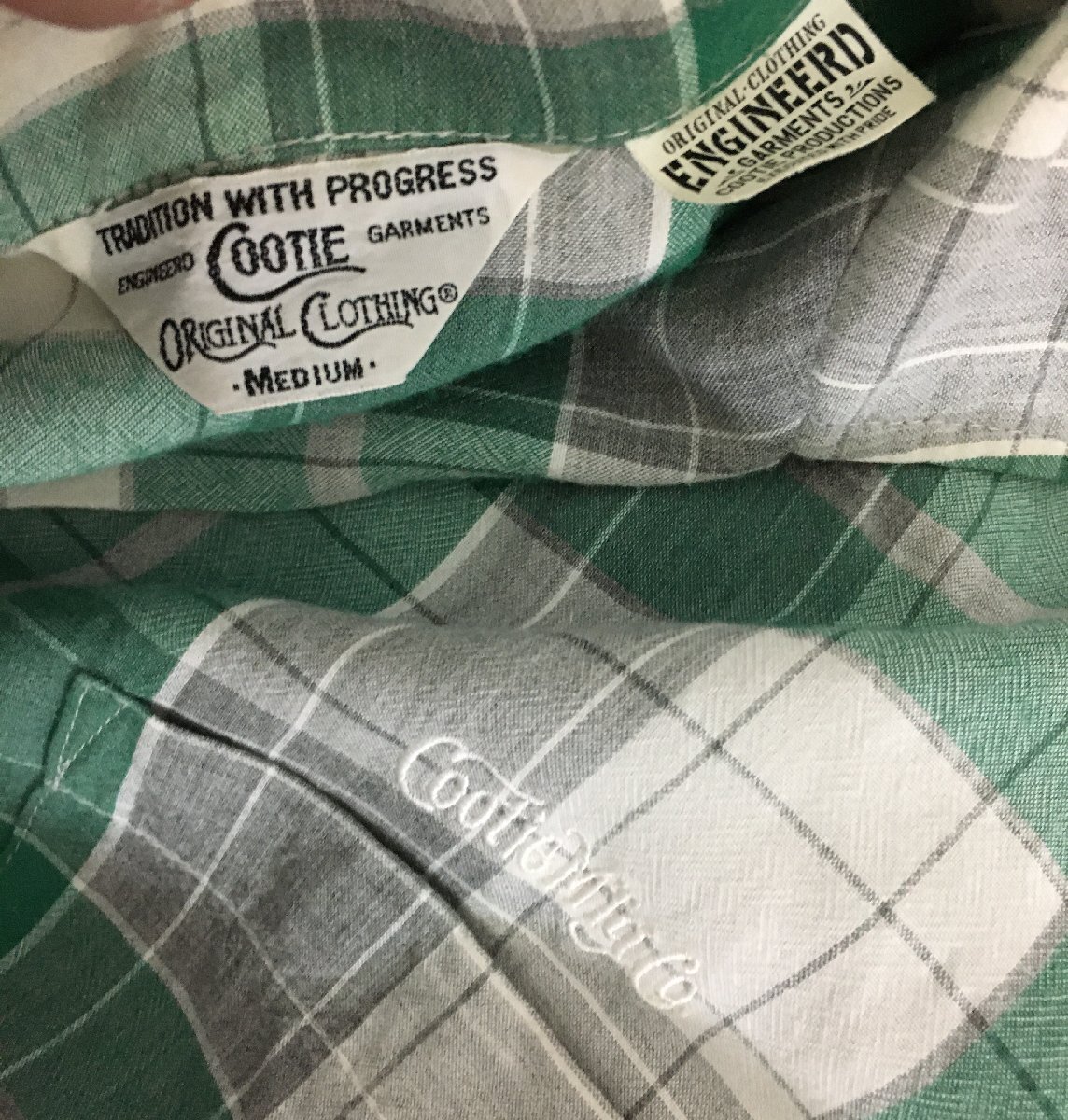 ◆COOTIE クーティー チェック 刺繍ロゴ オープンカラー 半袖 シャツ グリーン系 サイズM