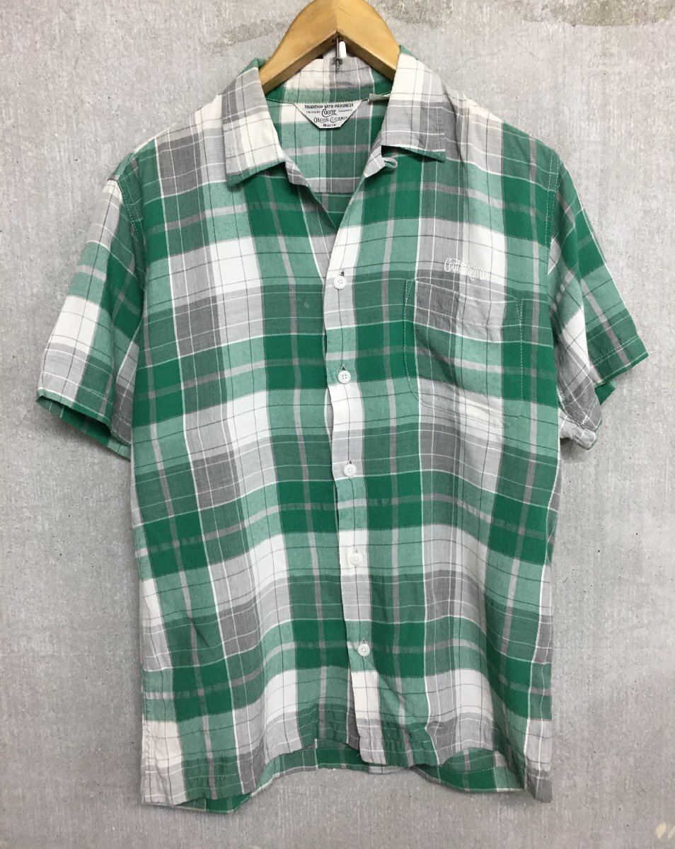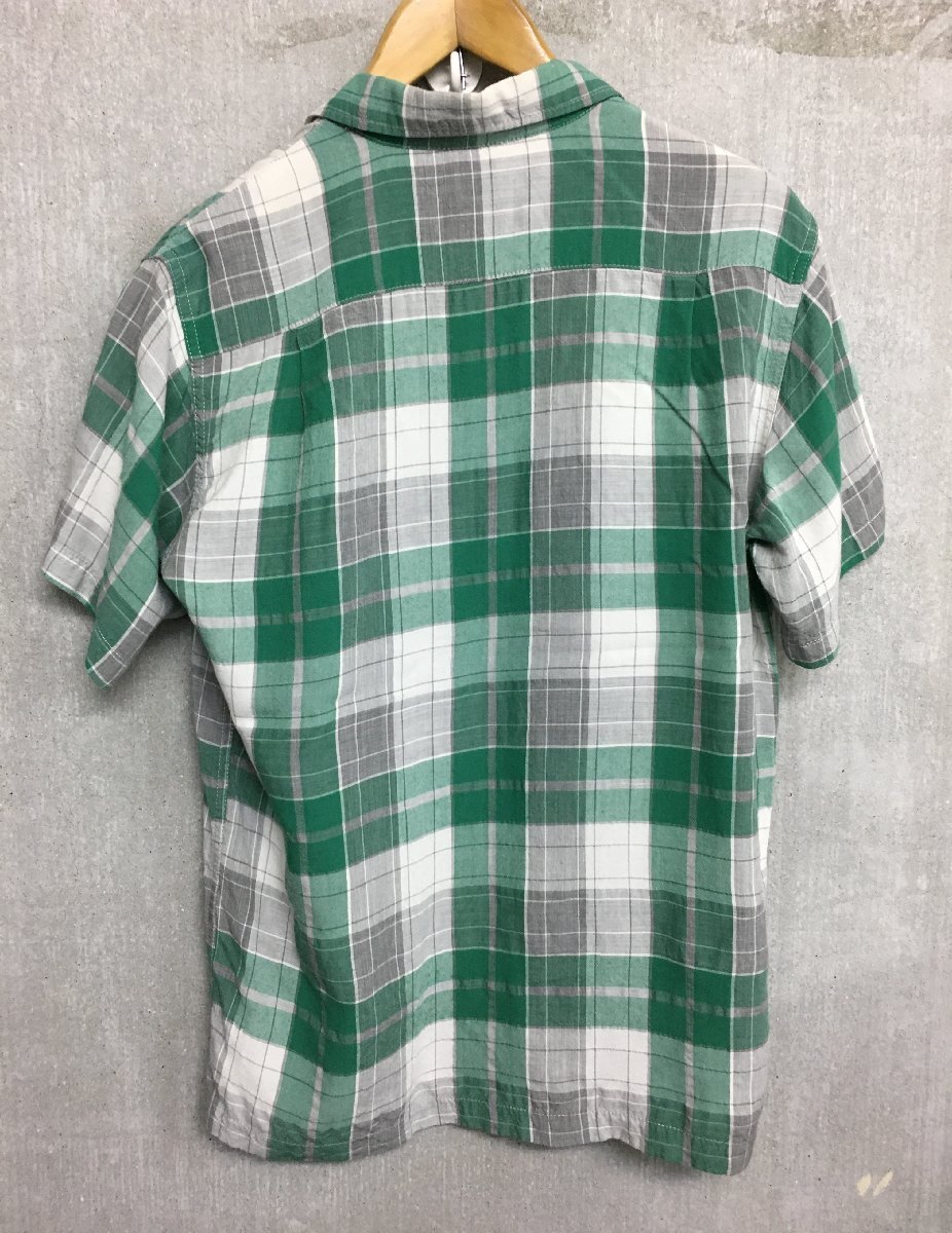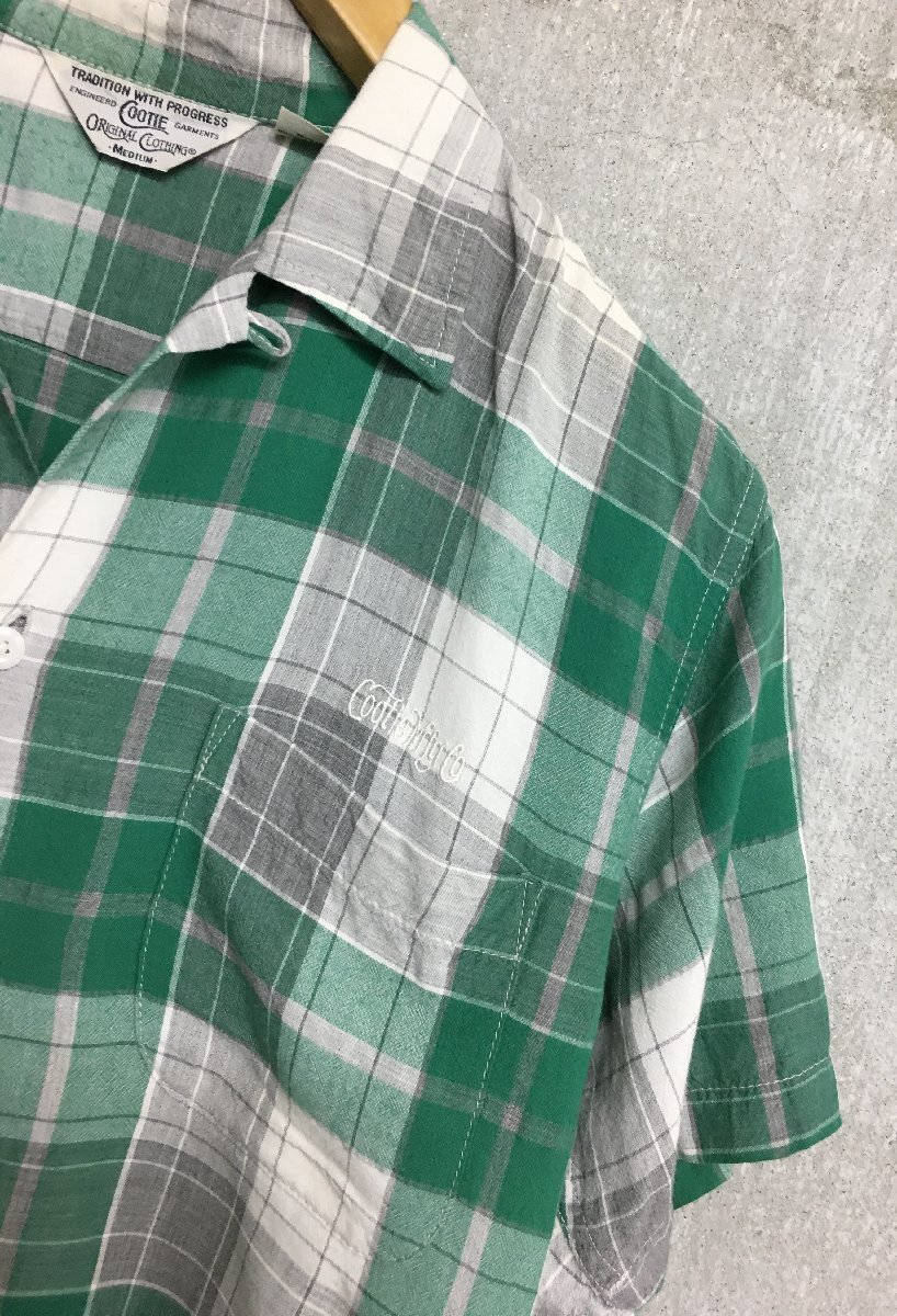 ◆ ◆COOTIE クーティー チェック 刺繍ロゴ オープンカラー 半袖 シャツ グリーン系  サイズM