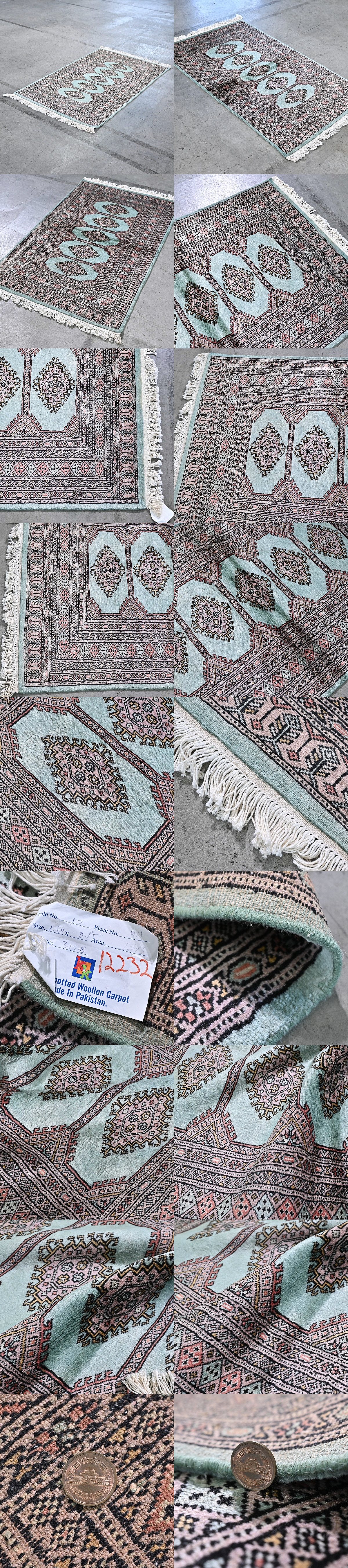 新品 未使用 パキスタン製 手織り ウールラグ 絨毯 ブハラ柄 ハンドノット 羊毛 カーペット インテリア リビング 応接室 ホテル P-57