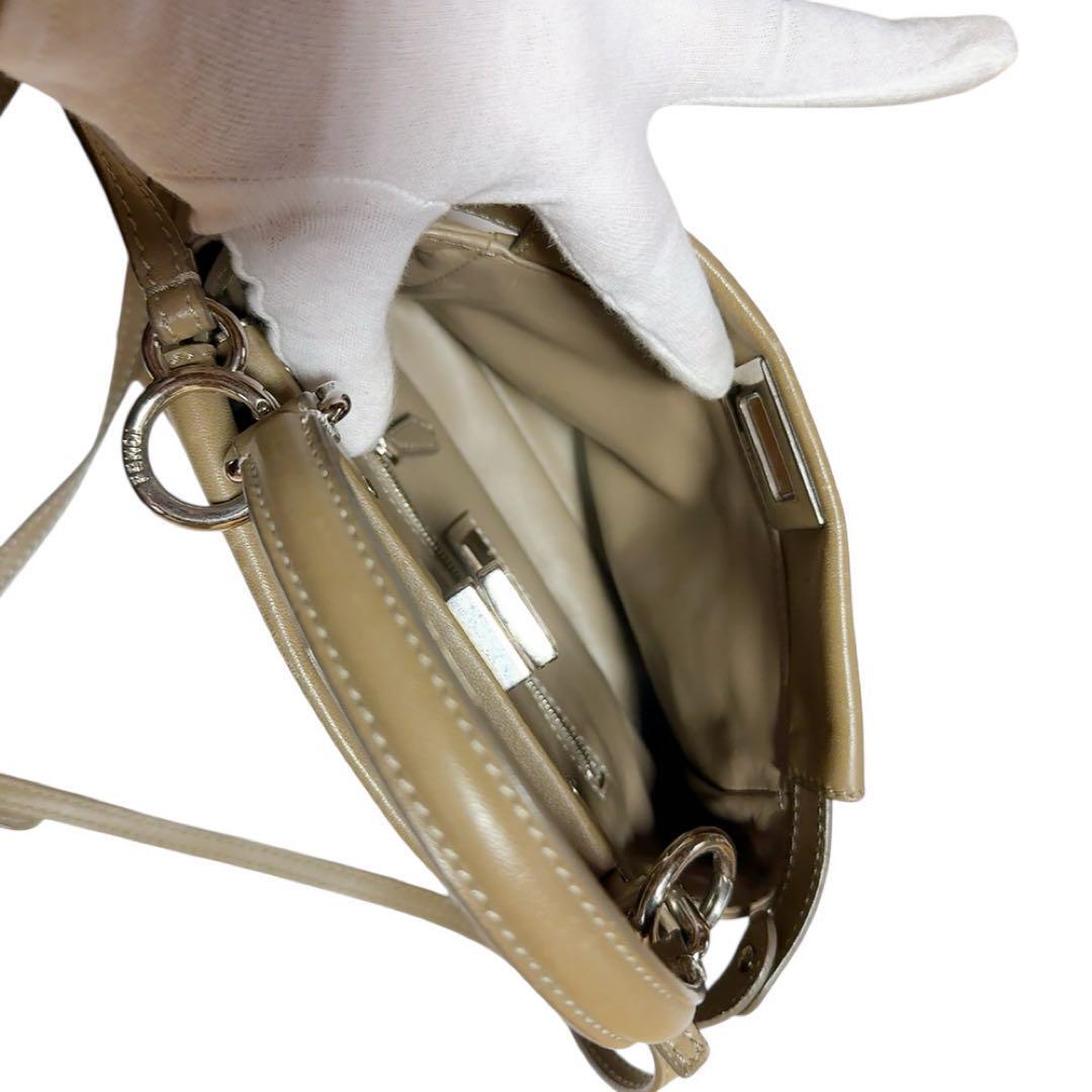 【FENDI】フェンディ 8BN244 ラムスキン ミニピーカブー ショルダーバッグ ベージュ系