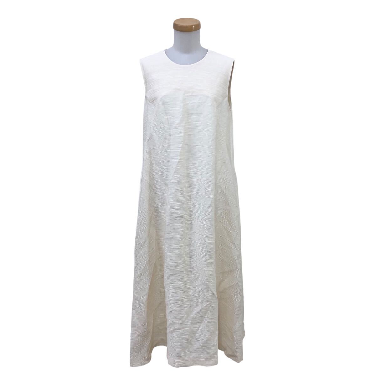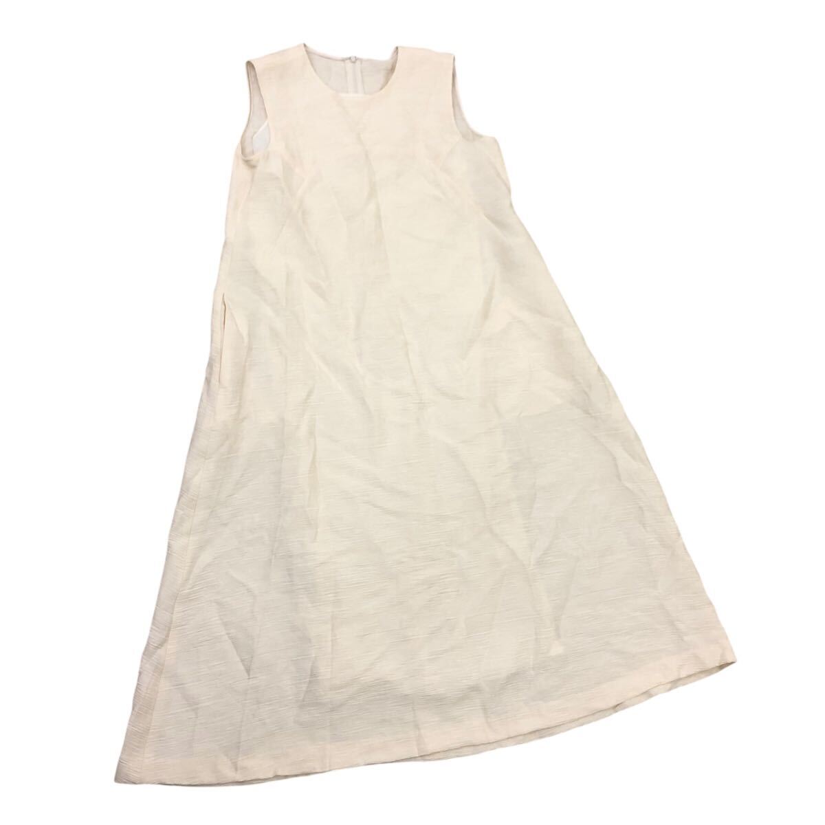 Nm316-21 HIROKO KOSHINO ヒロココシノ ノースリーブ Aライン ロングワンピース ワンピース フレアワンピ アイボリー レディース 38 日本製