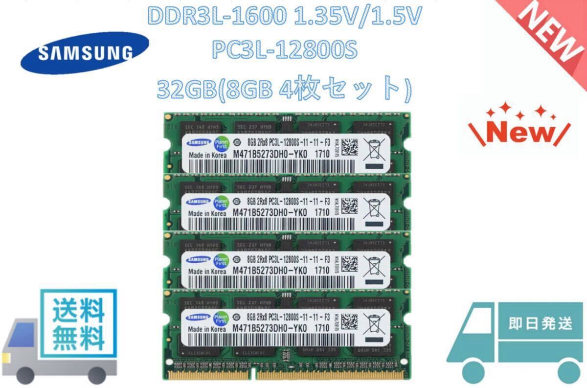 新品未使用 サムスン samsung 32GB(8GB×4枚) 2RX8 DDR3L 1600MHz PC3L-12800S SODIMM 204pinラップトップメモリRAM 送料無料