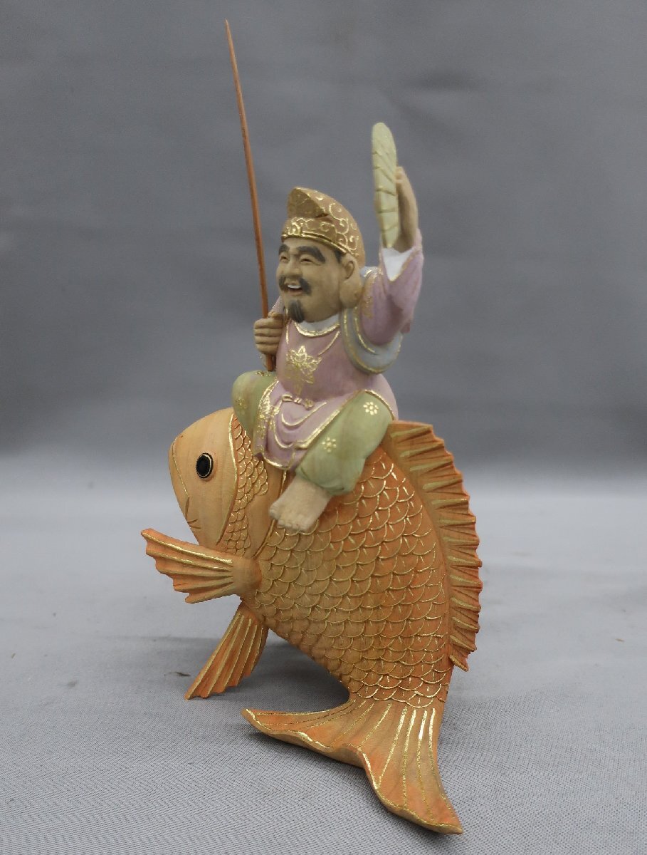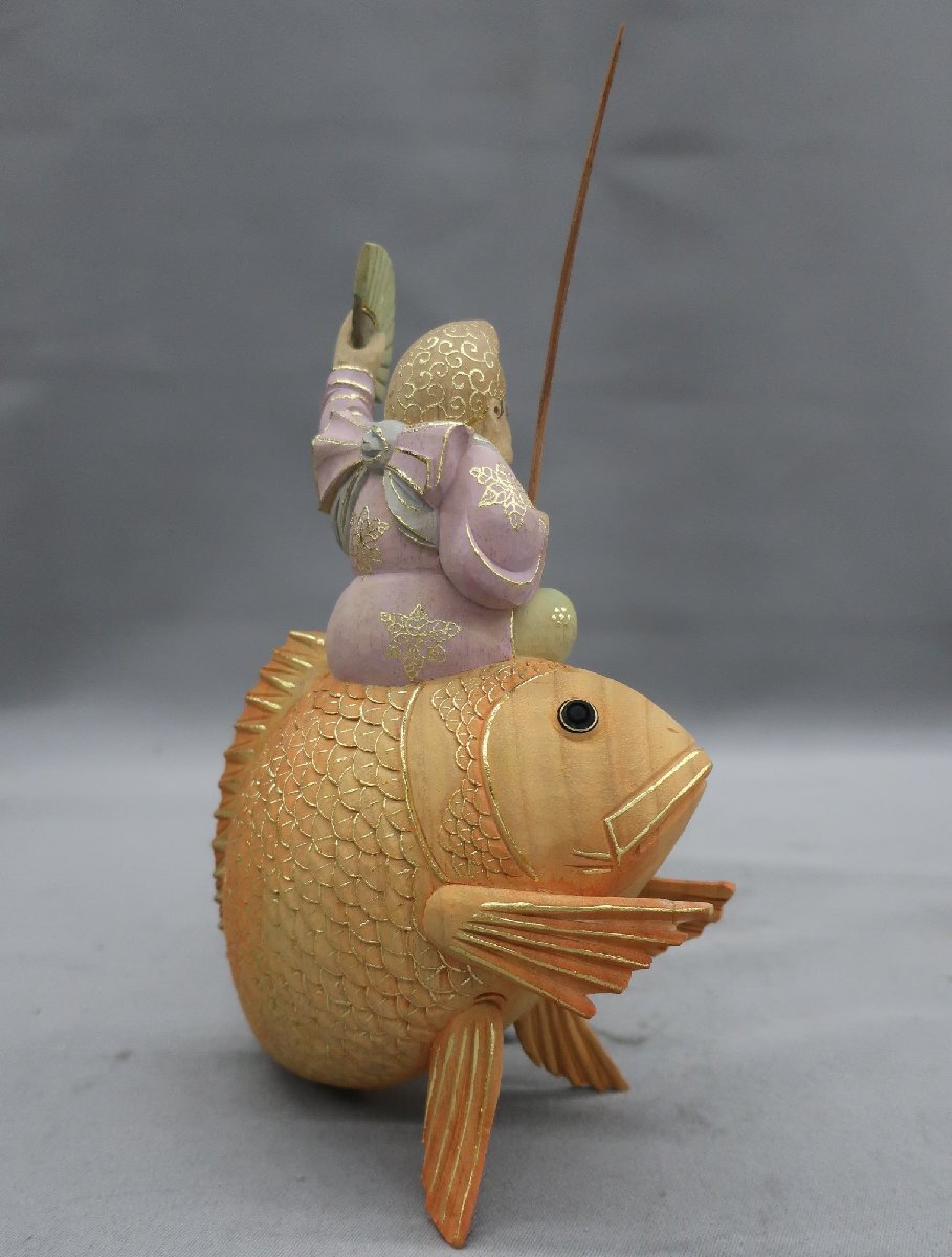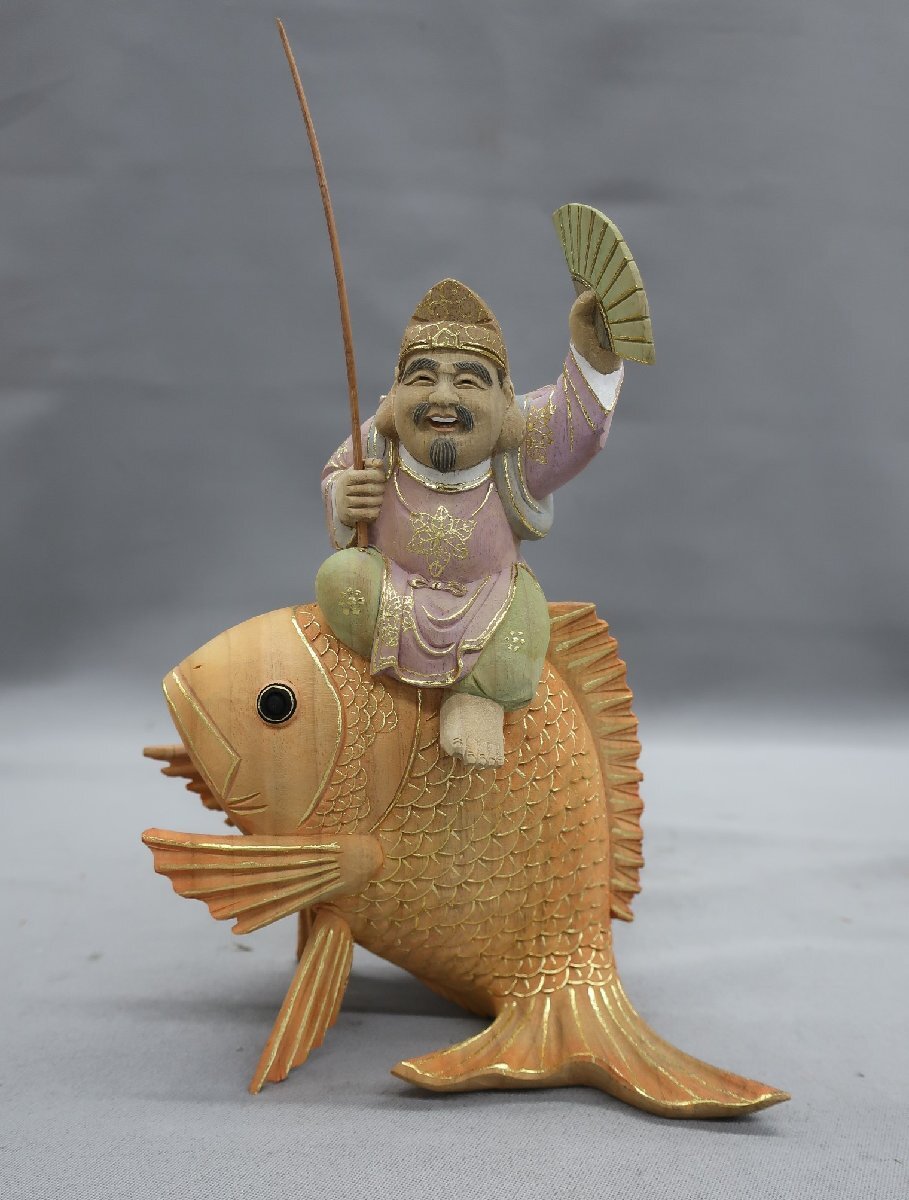 淡彩魚上恵比寿 楠 仏具 仏像 新品未使用 ②-④ー№11