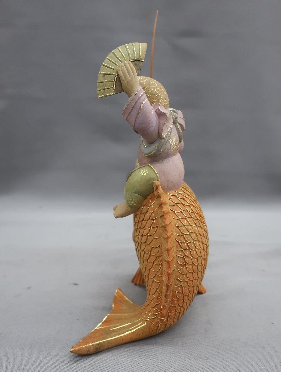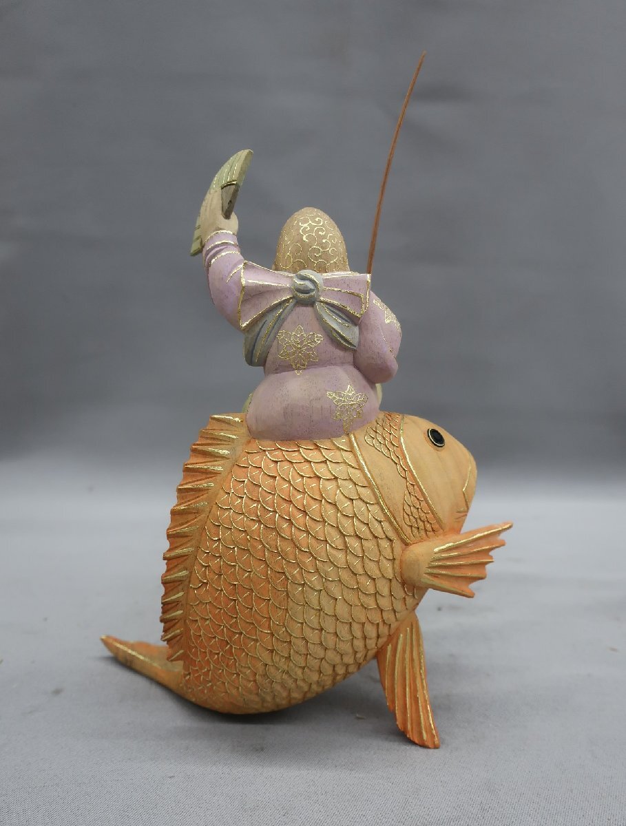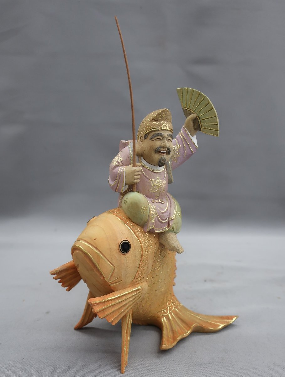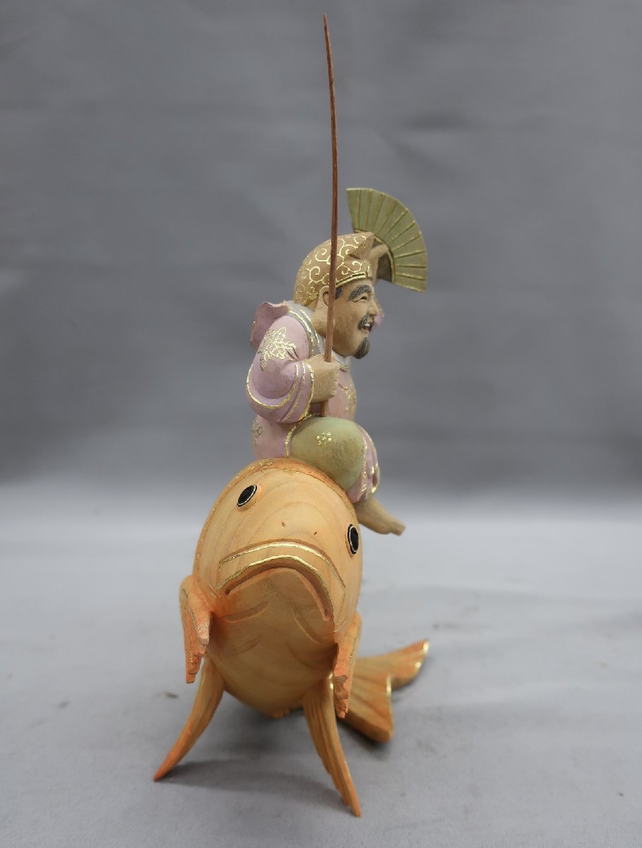 淡彩魚上恵比寿 楠 仏具 仏像 新品未使用 ②-④ー№11