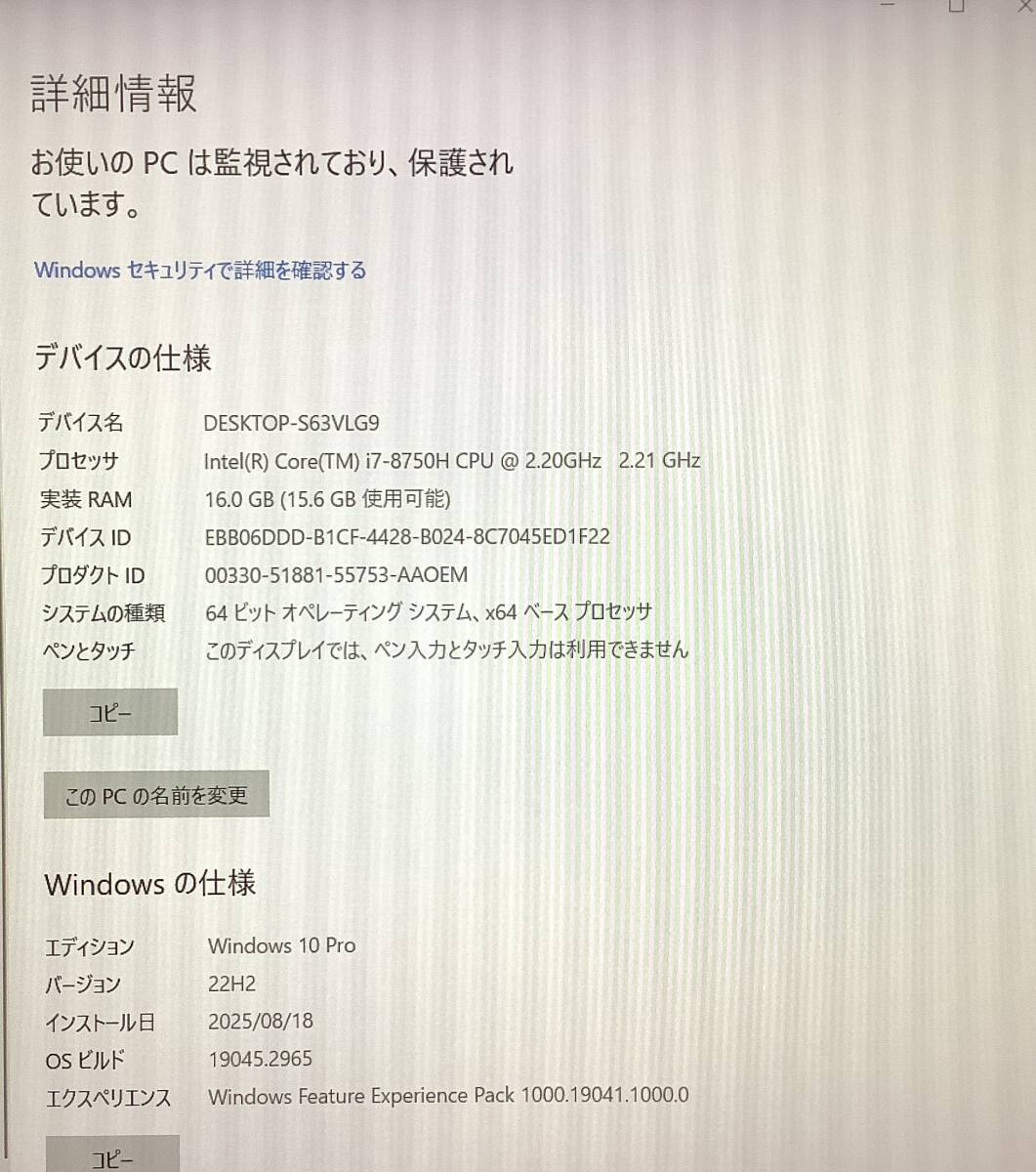 S7081992 LENOVO ThinkPad p1 1点 (i7-8750h 16GBメモリ 512GBx2)【通電OK】