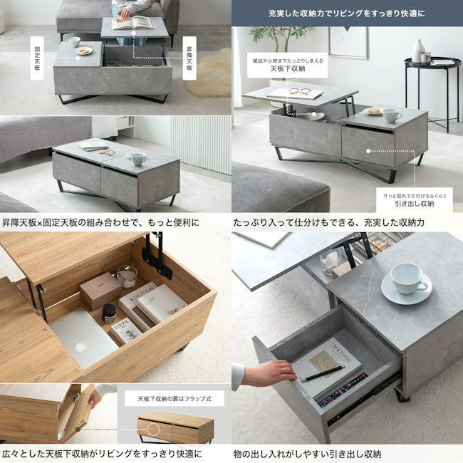 ◆デザイン性と実用性を備えた昇降式センターテーブル