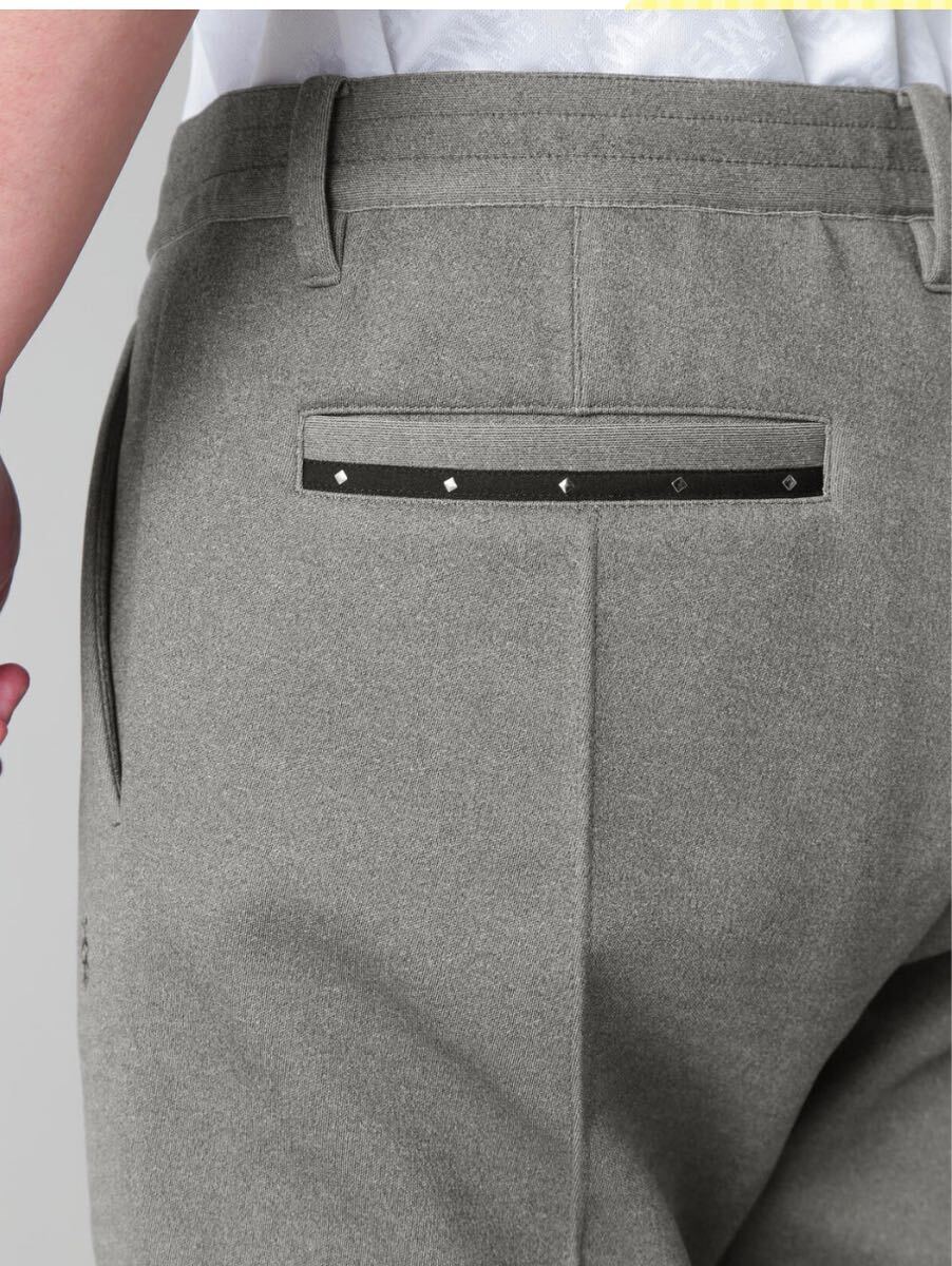 マルチポリエステル糸を使用しハイゲージでコンパクトに編立てた、ダンボールニットジョガーパンツ。ダンボールニットならではの優れたストレッチ性と弾力性が特徴の、スッキリしたシルエットのジョガーパンツです。スタッズテープを圧着した、後ろ左ポケット口がデザインポイントになっています