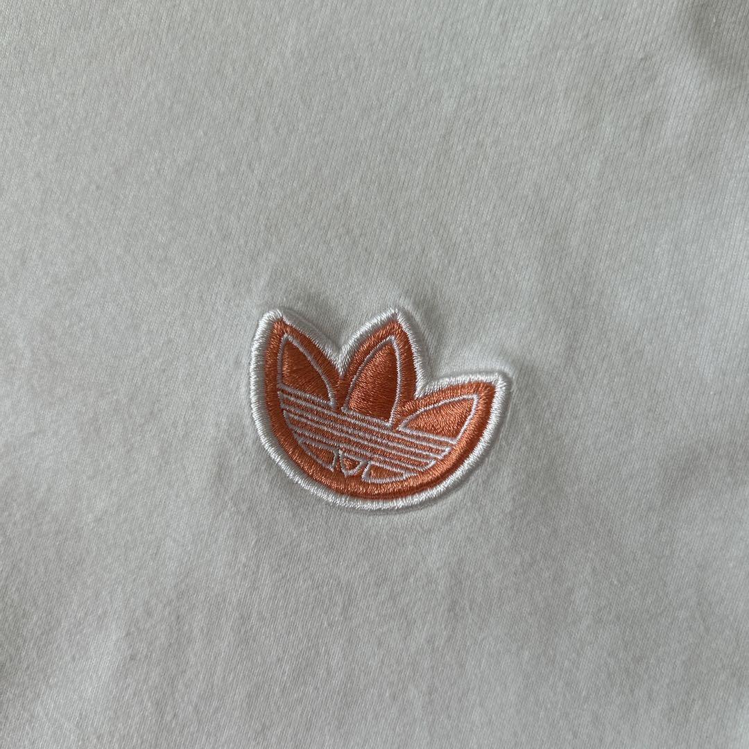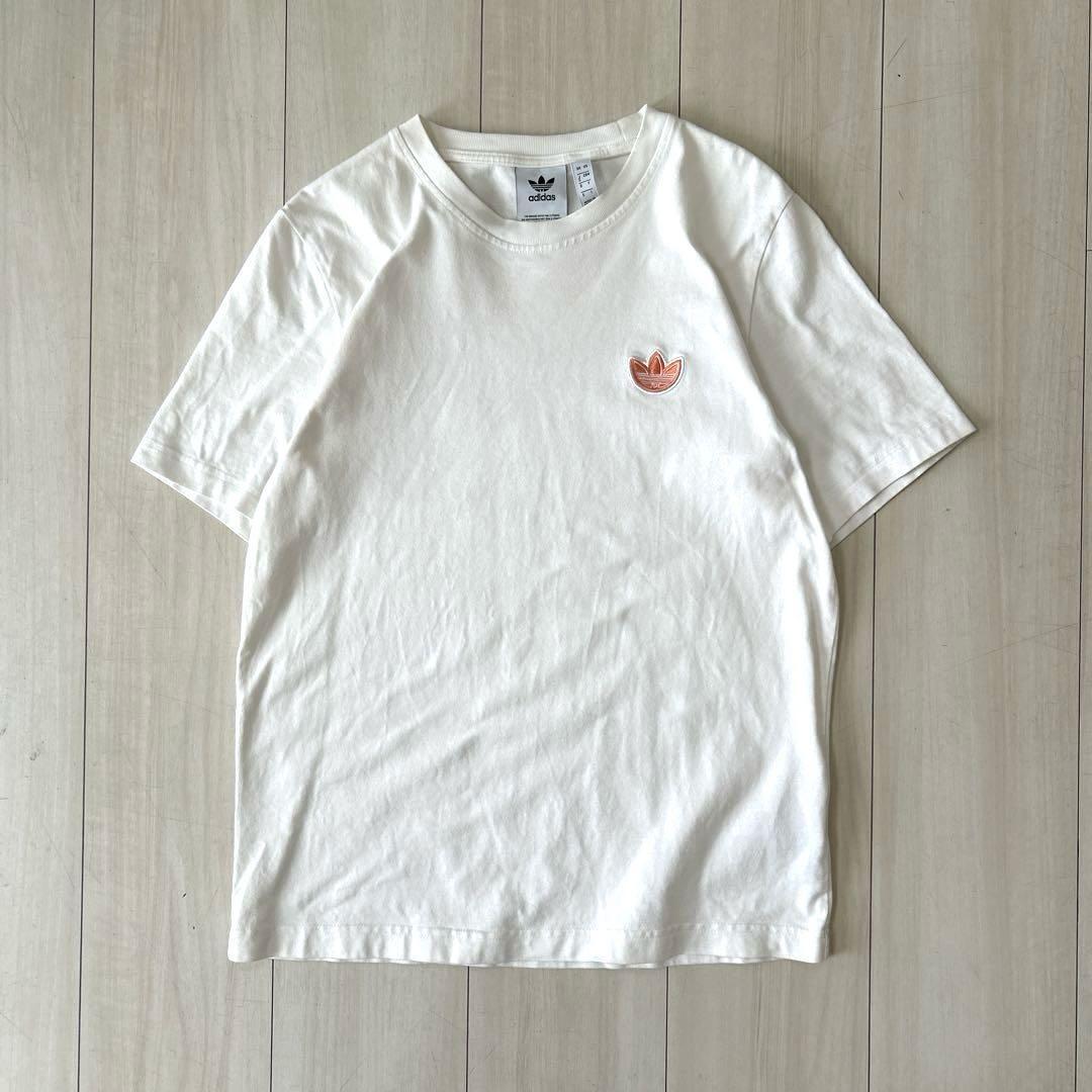 adidas オレンジトレフォイル刺繍ロゴTシャツ ホワイト ユニセックス ベトナム製
