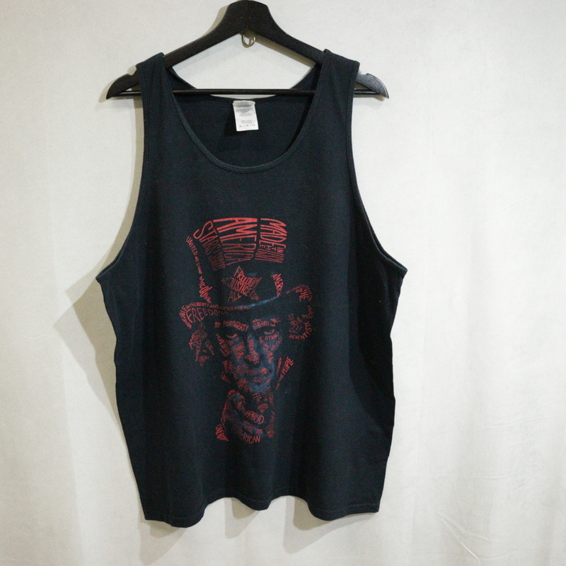a761 2000年代製 GILDAN ギルダン タンクトップ■00s 表記XLサイズ 黒 ブラック メッセージ アンクルサム アメカジ ストリート 古着 古着卸