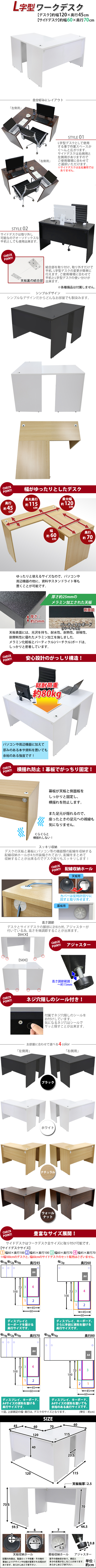 | 商品紹介 | ■作業スペースを広く確保出来る、L字型ワークデスクです。 ■サイドデスクの幅が約60cmのタイプです。 ■会議室や事務所等、オフィス家具として様々なシーンでお使いいただけます。 ■天板には、メラミン加工を施しています。 ■幕板が天板と側面板をがっちりと固定!横揺れを防止します。 ■ネジ穴隠しのシール付き。 ■デスクの天板と幕板に配線収納ホールが2カ所ずつ備わっています。 ■アジャスターで高さの調節が可能です。(高さ調節範囲〜約15mm) ※こちらの商品は、組立て式です。組立てにはプラスドライバーが必要です。お客様でご用意ください。 ※組立図が付属します。 ※サイドデスクの取り付けはデスクの右側専用となります。 ■材質:パーティクル(パーチクル)ボード(メラミン加工)(本体、サイドデスク)、プラスチック(アジャスター、配線収納ホール) ■重量:約39kg(デスク:約23kg、サイドデスク:約16kg) ■総耐荷重:約80kg ●新品商品ではありますが、輸入商品の為、多少の擦り傷などがある場合がございますので、ご納得の上ご購入下さいませ。 ●ご購入後、お客様ご都合によるご返品、ご返金等は一切お受け致しておりません。 ●本商品を使用した際に発生したトラブル、事故につきまして、当社は一切の責任を負いません。ご使用に関しましては、全て自己責任にてお願い致します。 ※カラーはホワイトとなります。 |