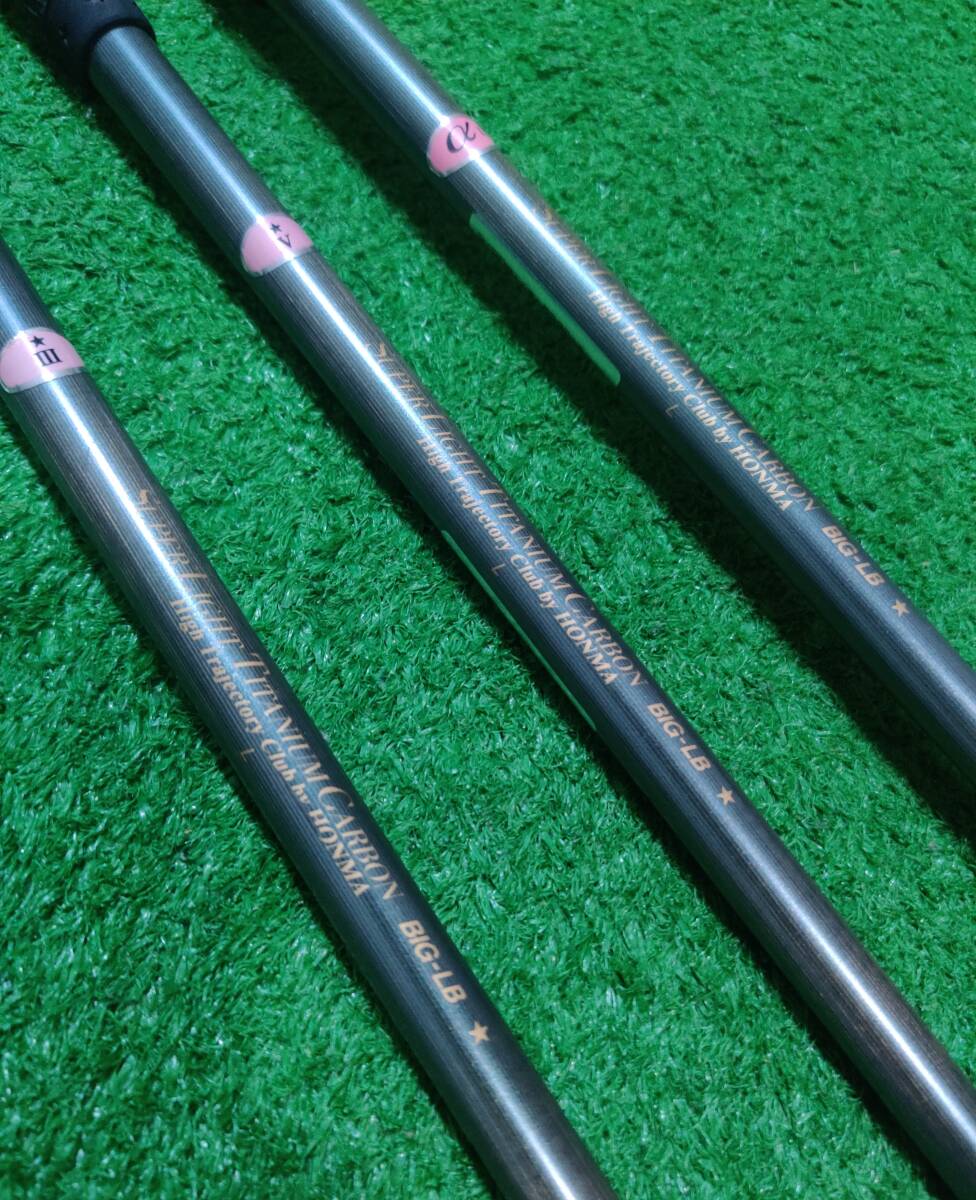 ◆レアなレディース◆ 本間ゴルフ BIG-LB GET パーシモン 3W/5W/α(7W) SUPER LIGHT TITANIUM CARBON Flex:L hiro honma