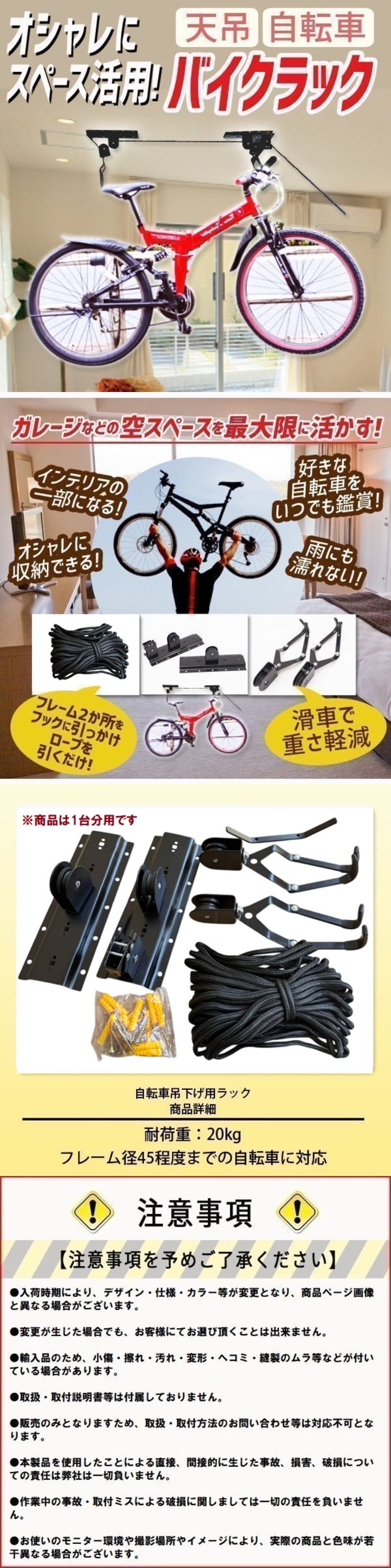 天吊 自転車ラック 自転車 バイクラック リフト スタンド 快適 スペース アパート マンション 個室 狭い 空間 ディスプレイ 滑車 お洒落