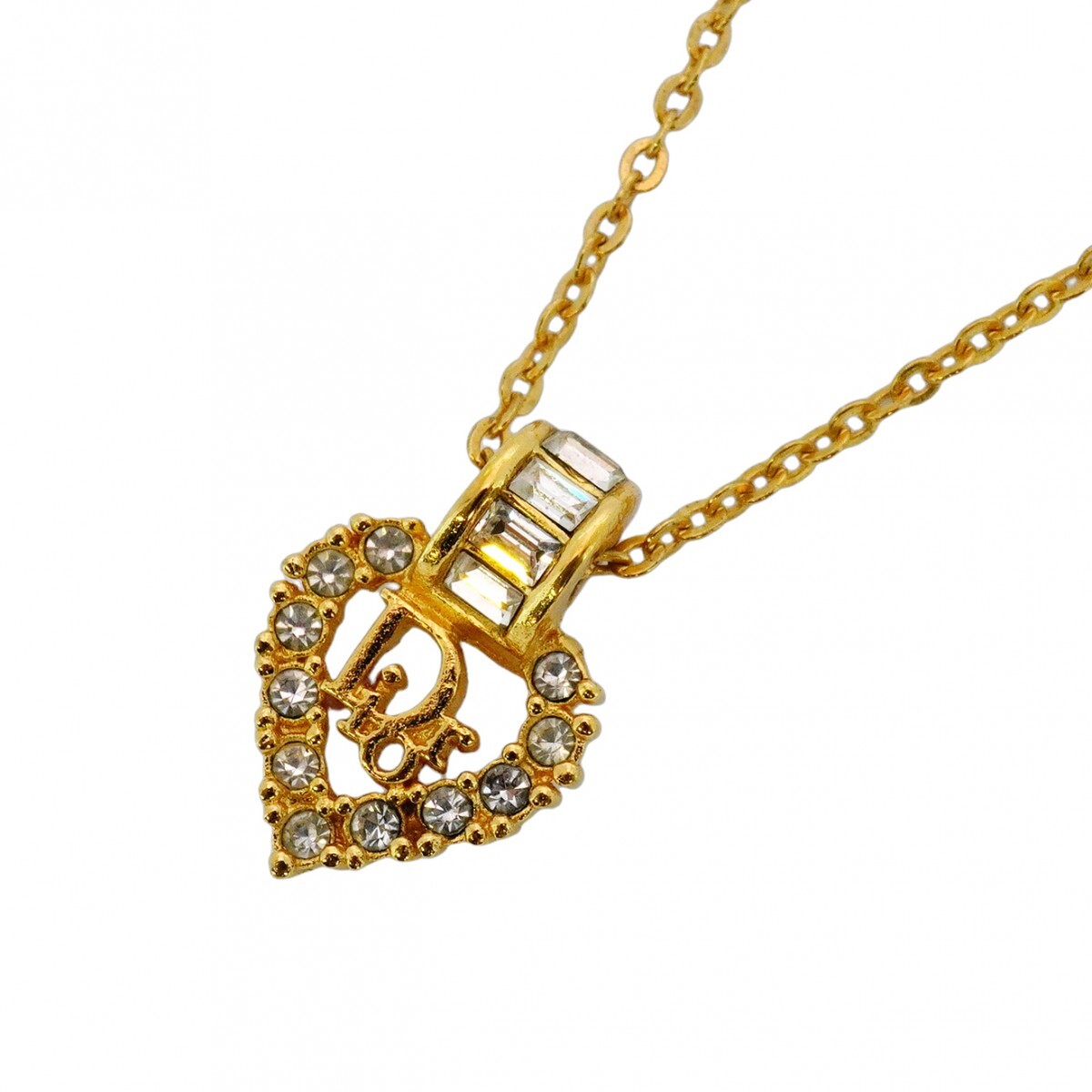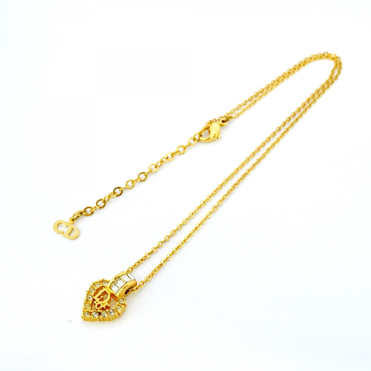 ★SALE【5jgb0553】クリスチャンディオール ネックレス ディオールロゴ ハートモチーフ GPメッキ ラインストーン ゴールド