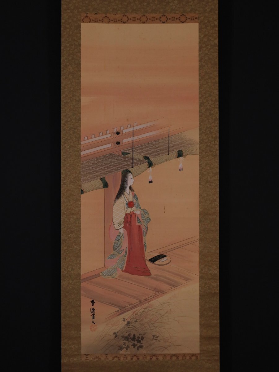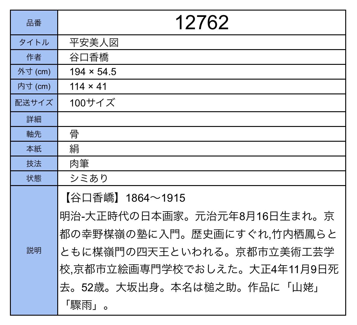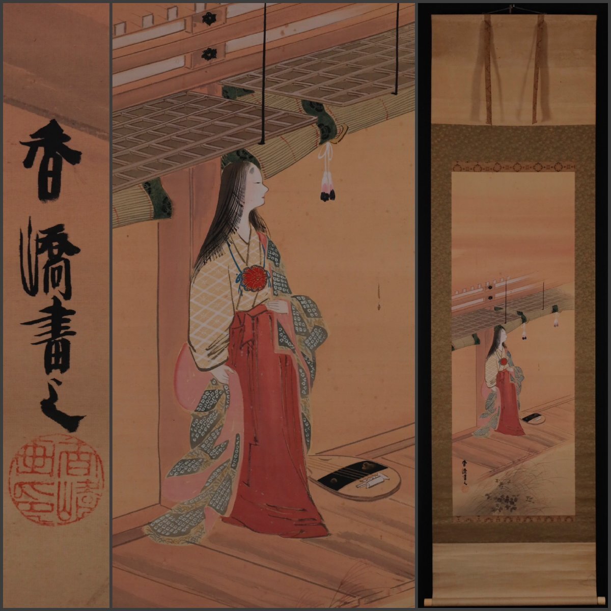 【模写】吉】12762 谷口香橋 平安美人図 幸野楳嶺師事 歴史画 大和絵 大阪の人 風俗画 茶掛け 茶道具 掛軸 掛け軸 骨董品