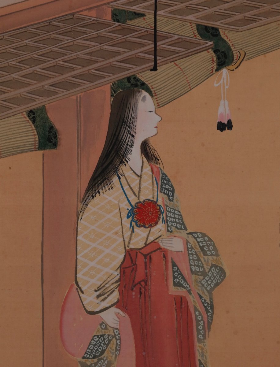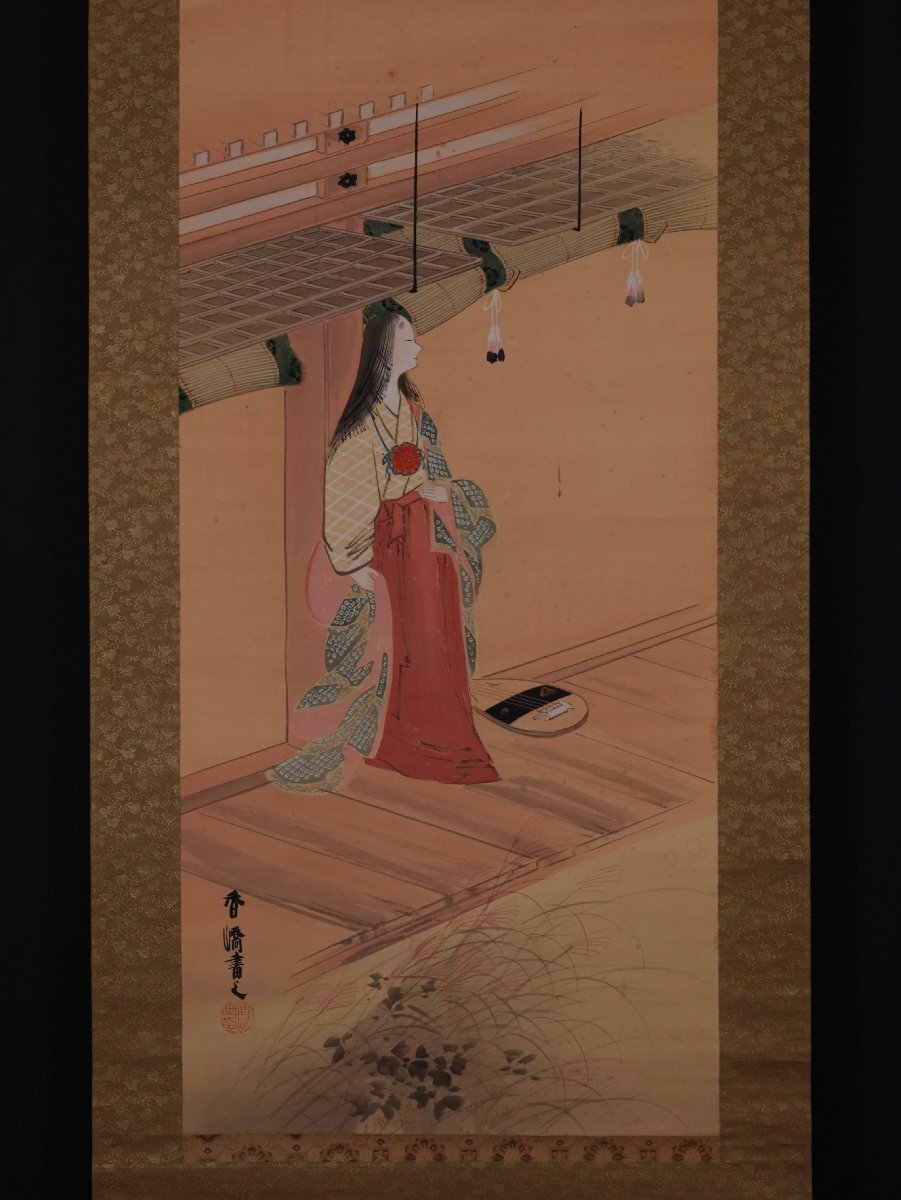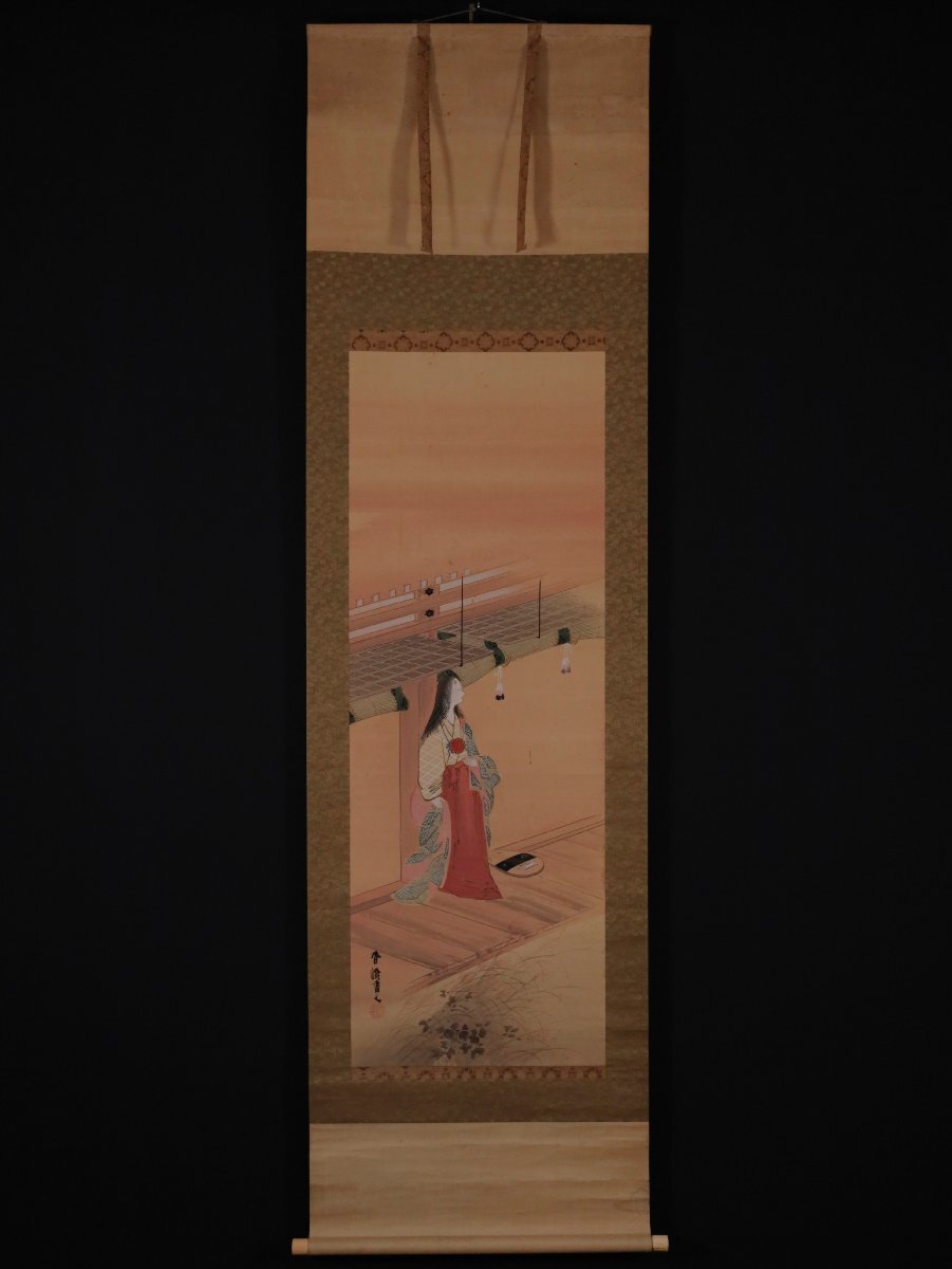 【模写】吉】12762 谷口香橋 平安美人図 幸野楳嶺師事 歴史画 大和絵 大阪の人 風俗画 茶掛け 茶道具 掛軸 掛け軸 骨董品