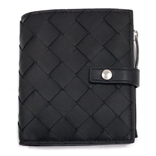 新品同様 ボッテガヴェネタ 600270-V3UH2/8803 イントレチャート レザー 二つ折り 財布 ブラック メンズ 付属品有 UE |