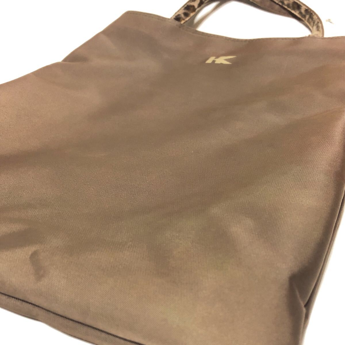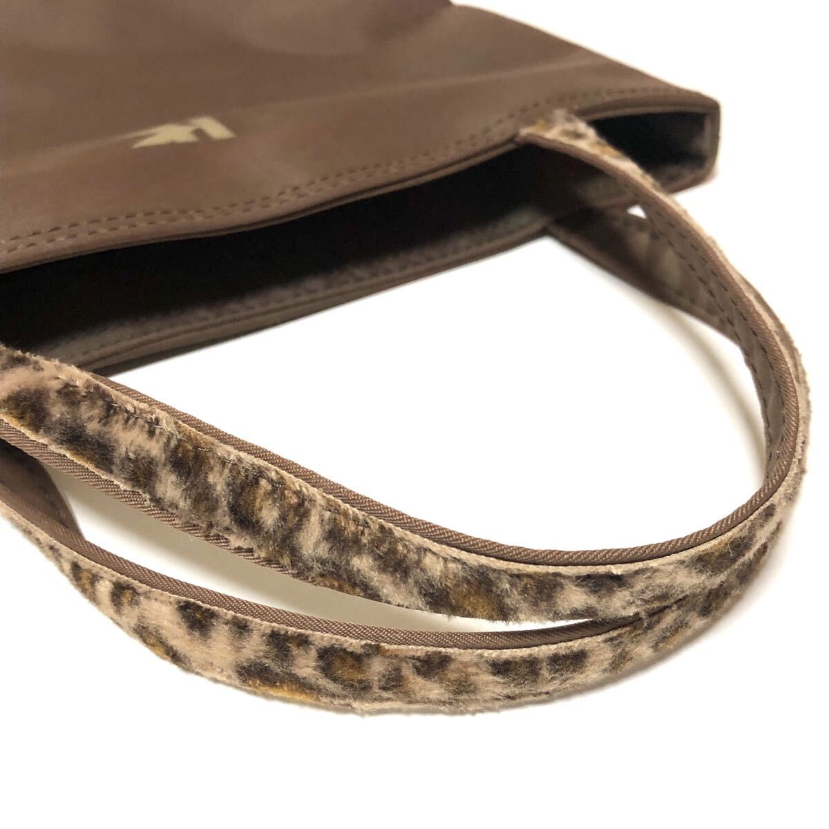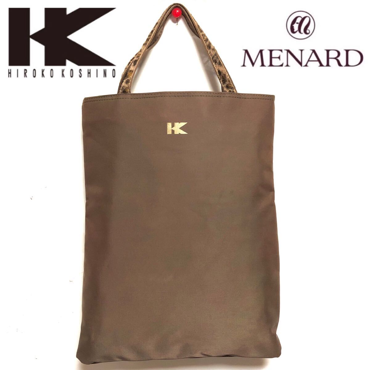 ■レア■HIROKO KOSHINO × MENARD・縦長 ナイロンバッグ■コシノヒロコ・メナード・ブラウン・玉虫色・持ち手ヒョウ柄・鞄・手提げ