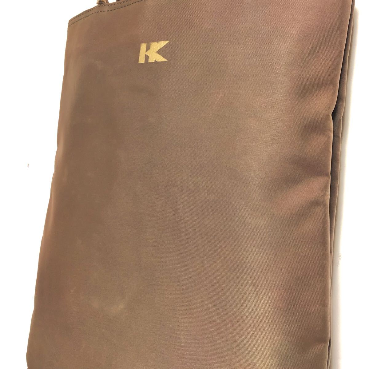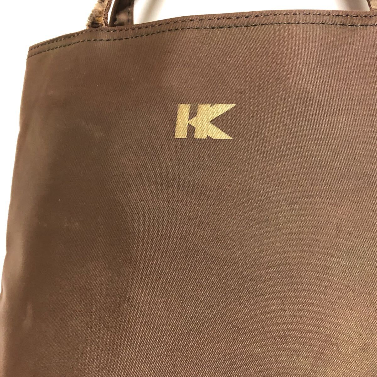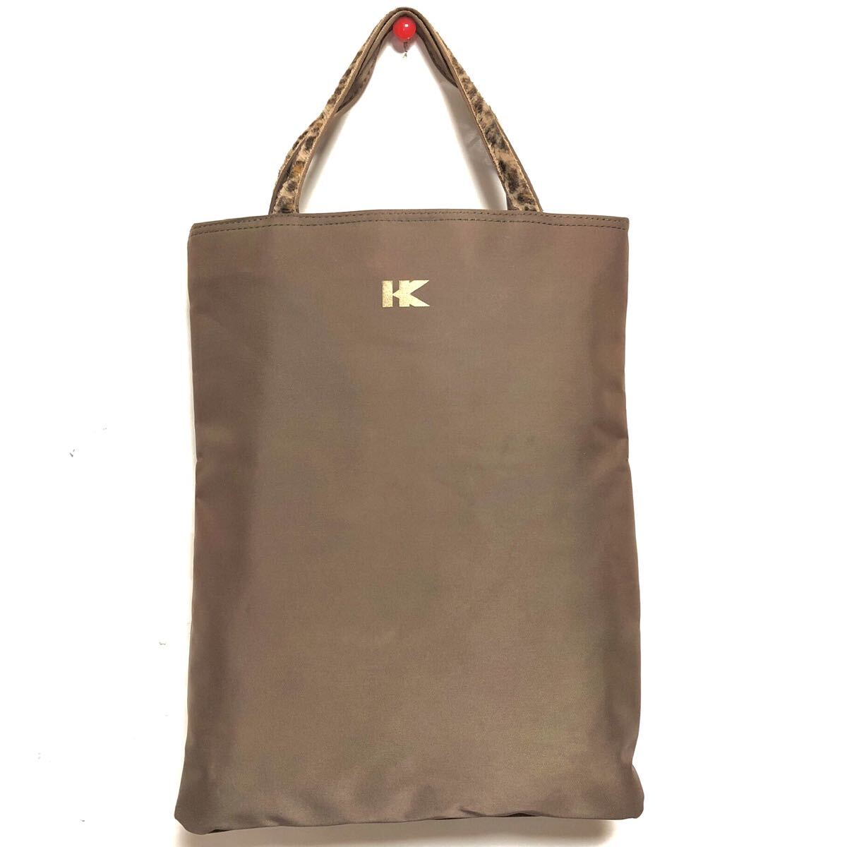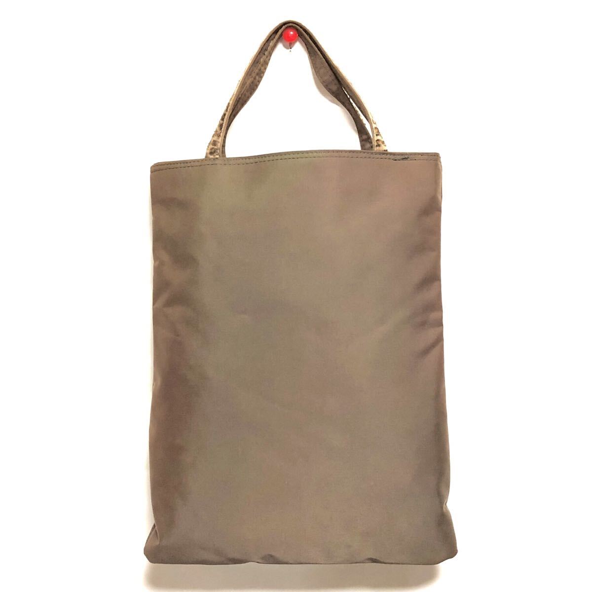 ■レア■HIROKO KOSHINO × MENARD・縦長 ナイロンバッグ■コシノヒロコ・メナード・ブラウン・玉虫色・持ち手ヒョウ柄・鞄・手提げ
