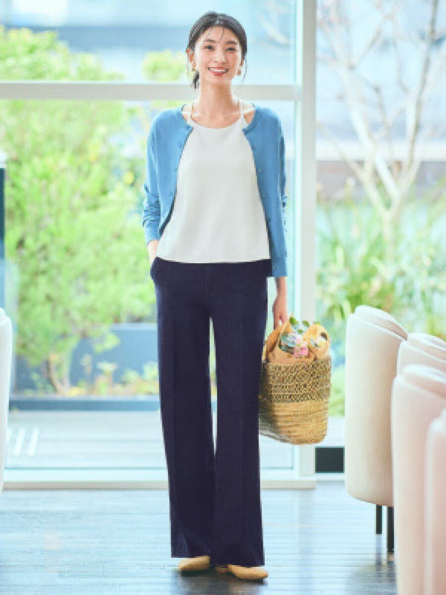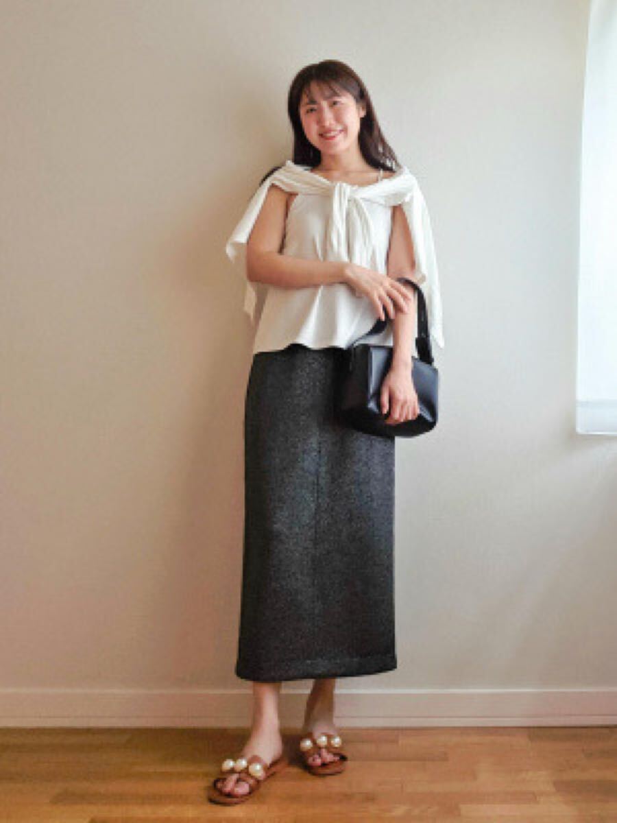 - ウエストまわりはほどよいフレアシルエットで、バックスタイルに特徴があるデザイン。