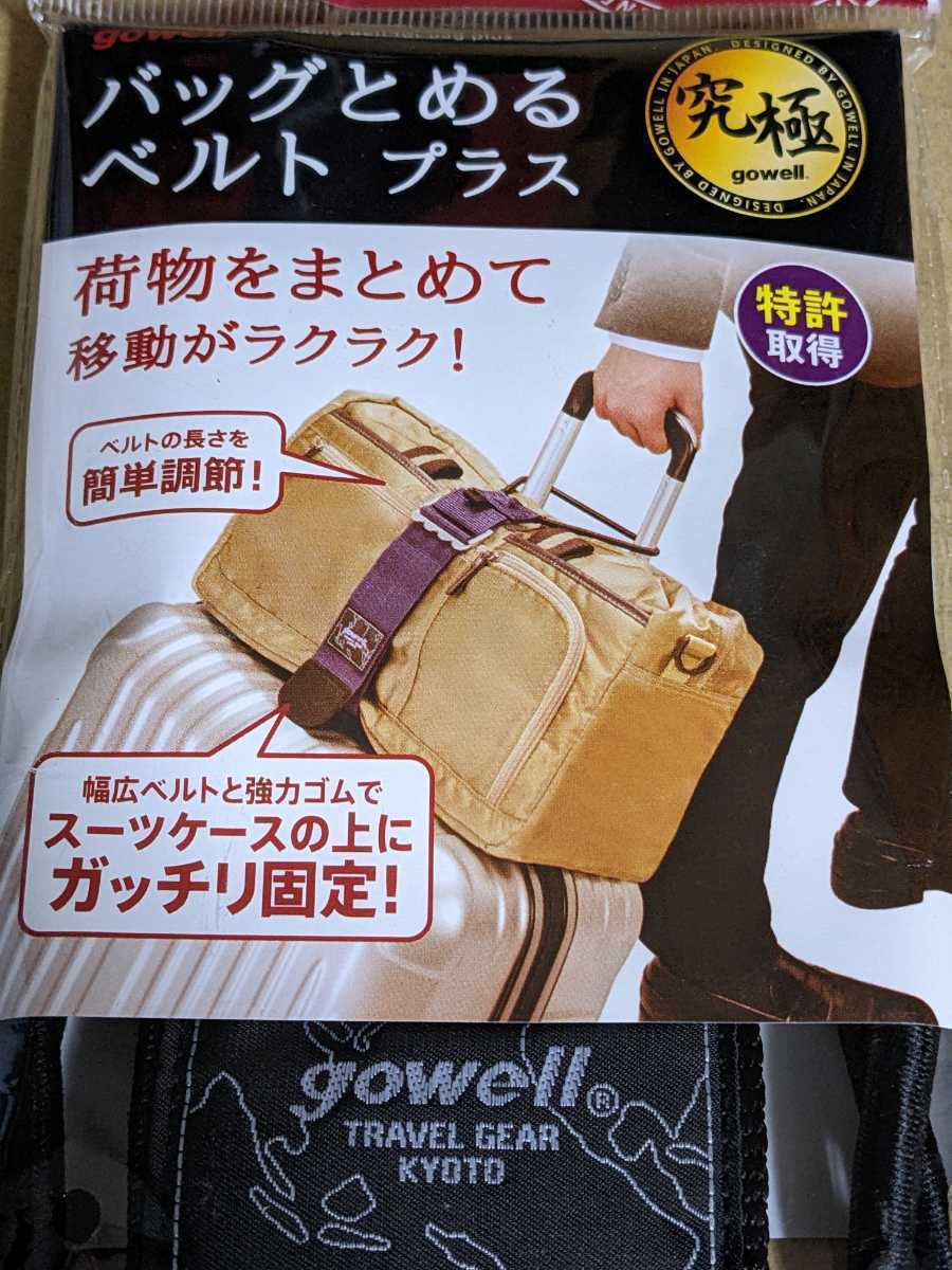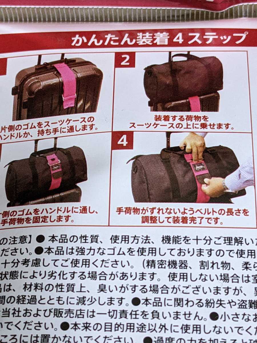 幅広ベルトと強力ゴムで、スーツケースの上にガッチリ固定。ずり落ちることなく荷物をまとめて移動がラクです。