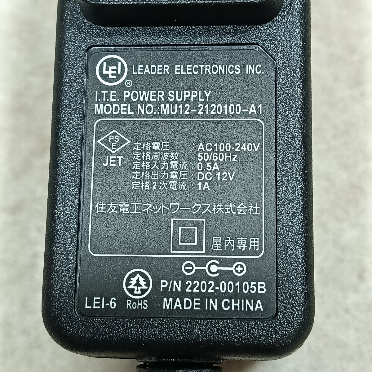 ●○ACアダプタ 12V 0.5A 外径6mm センターピン [MU12-2120100-A1] [#253]○●