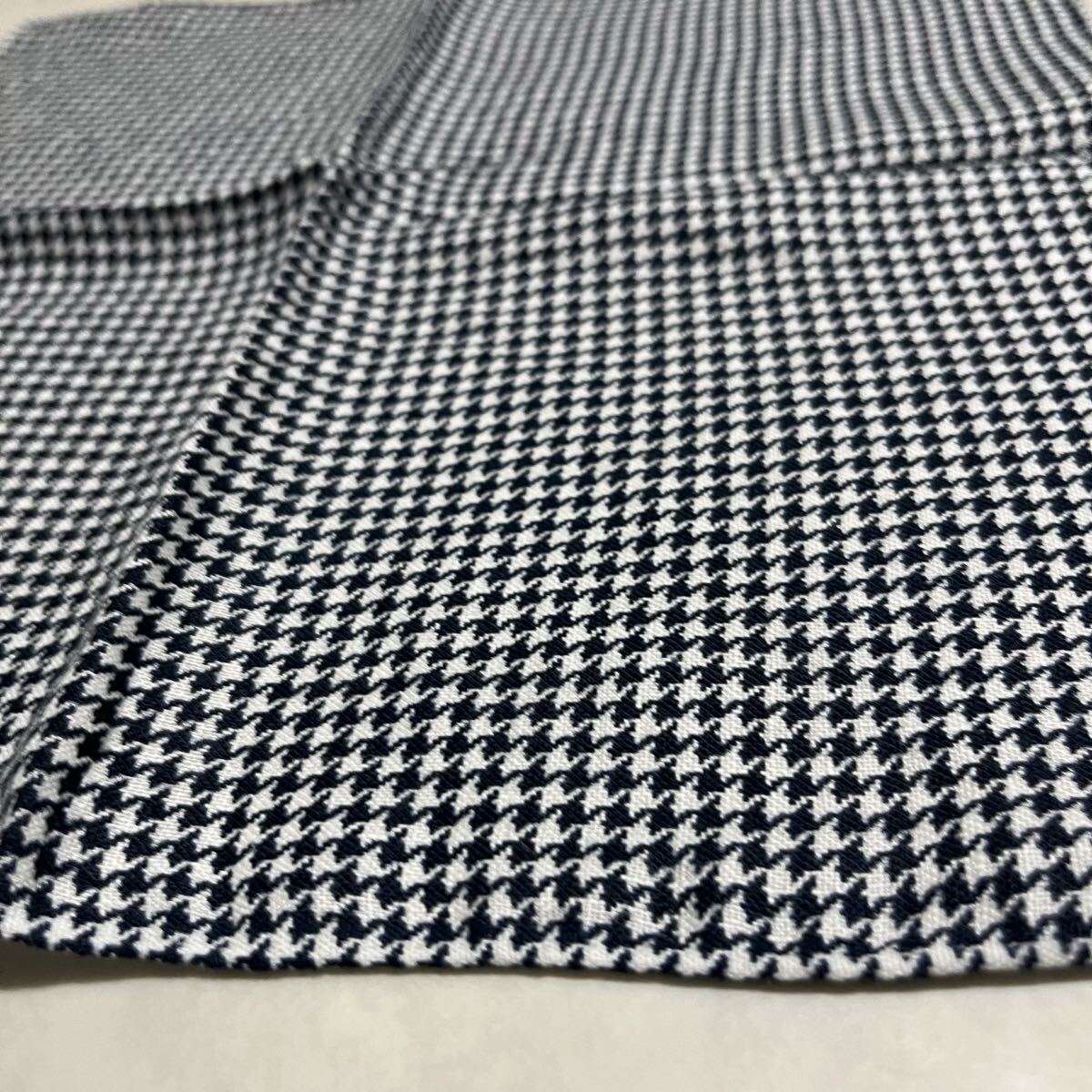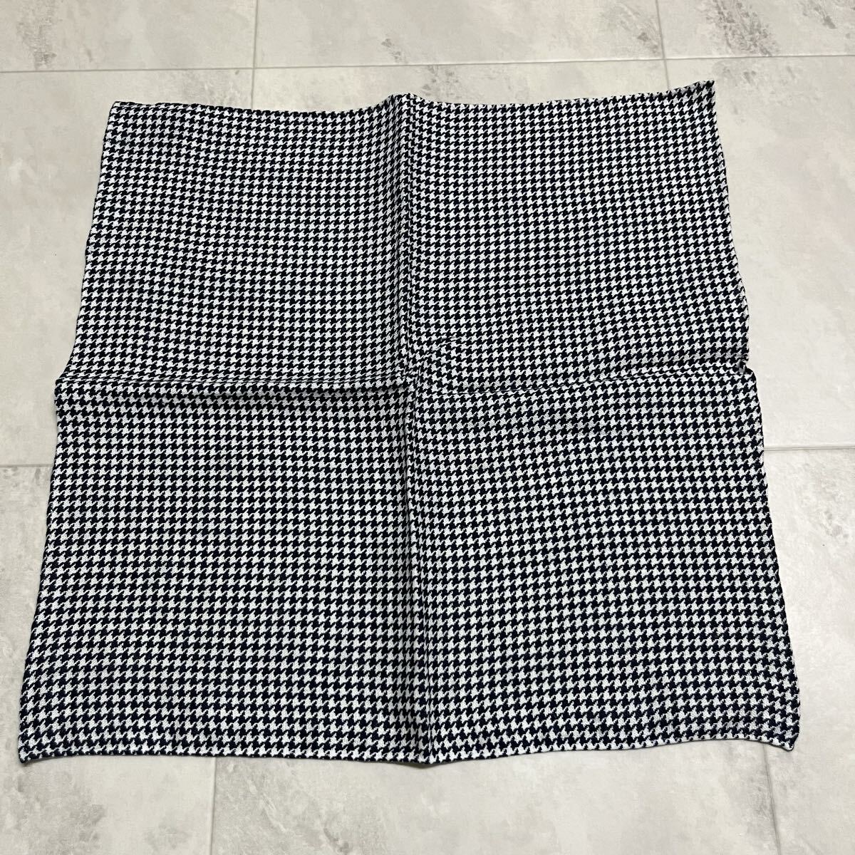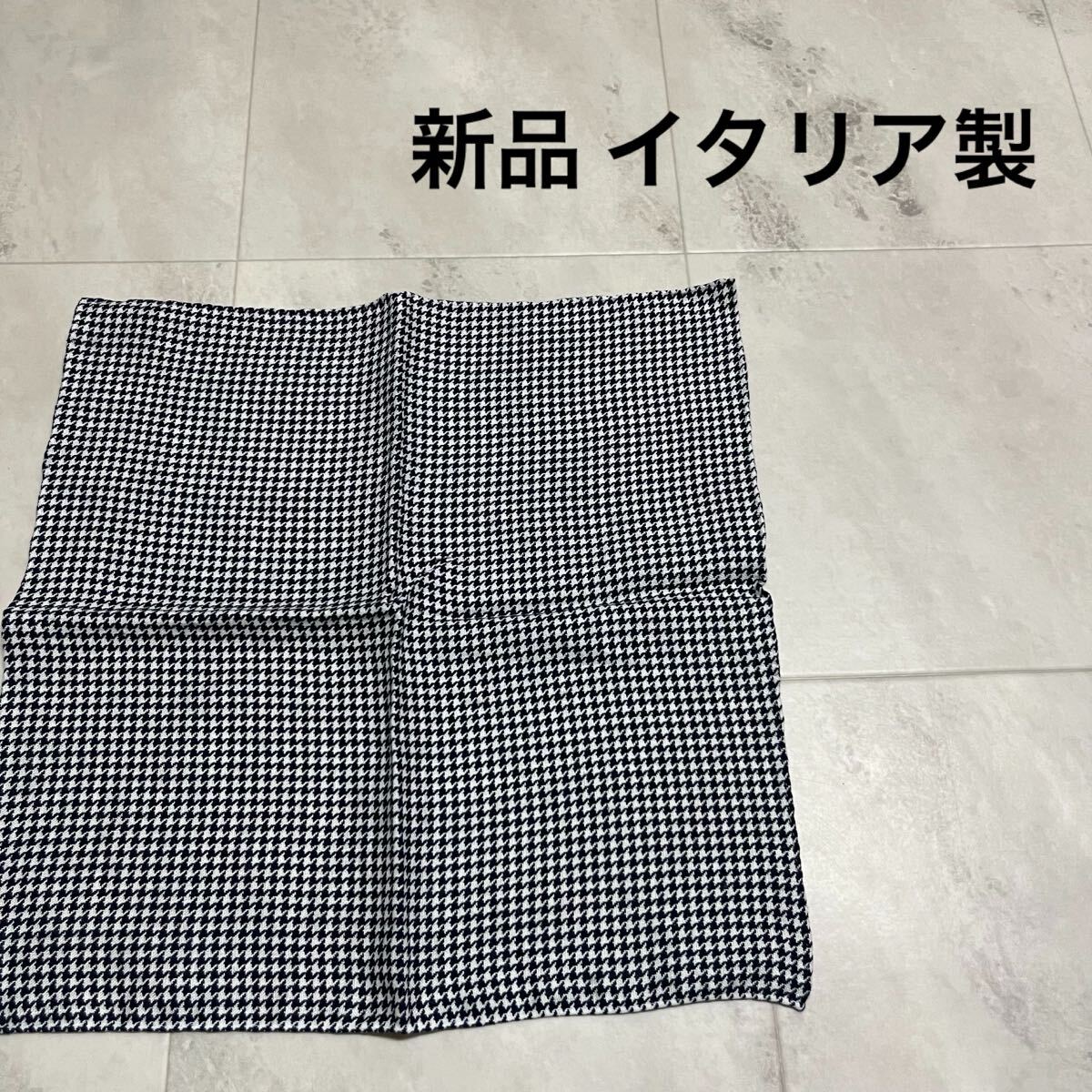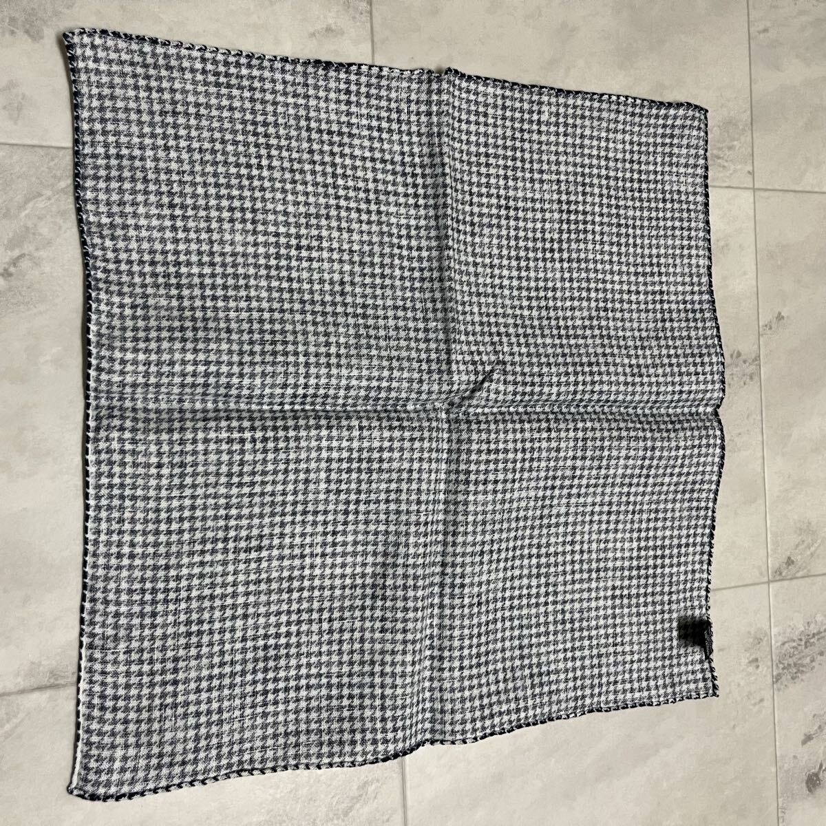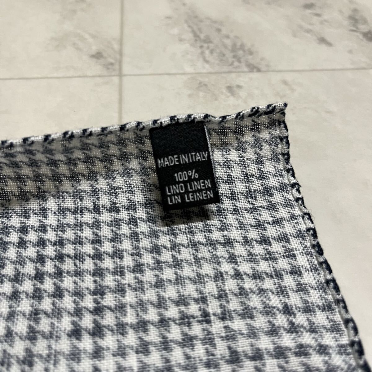 新品 イタリア製 made in italy バンダナ ハンカチ リネン 麻 LINEN 千鳥柄 高級 ヨーロッパ ネイビー 玉mc4008