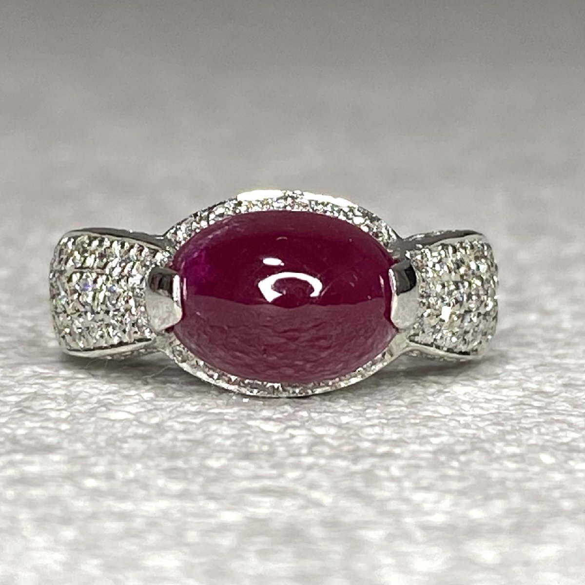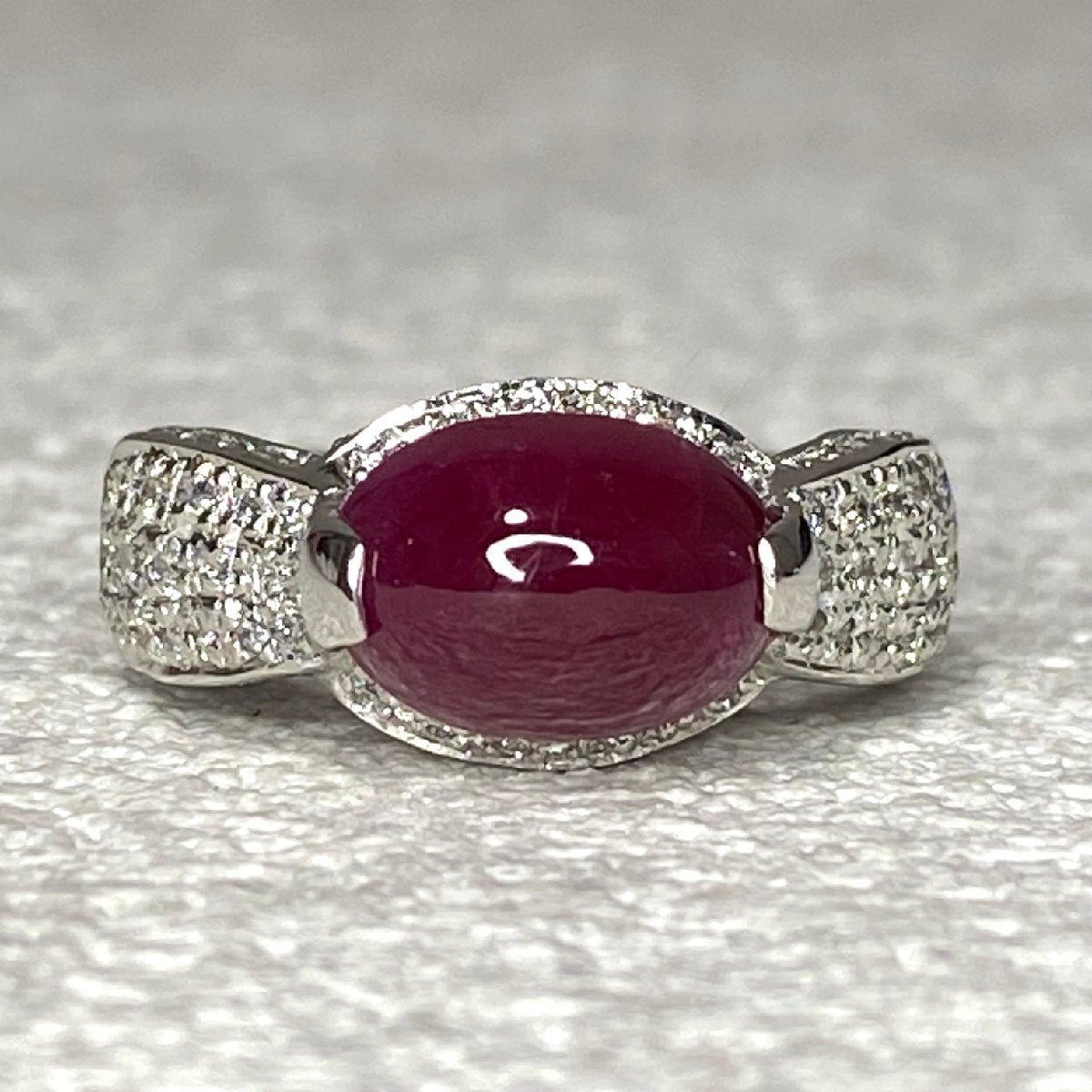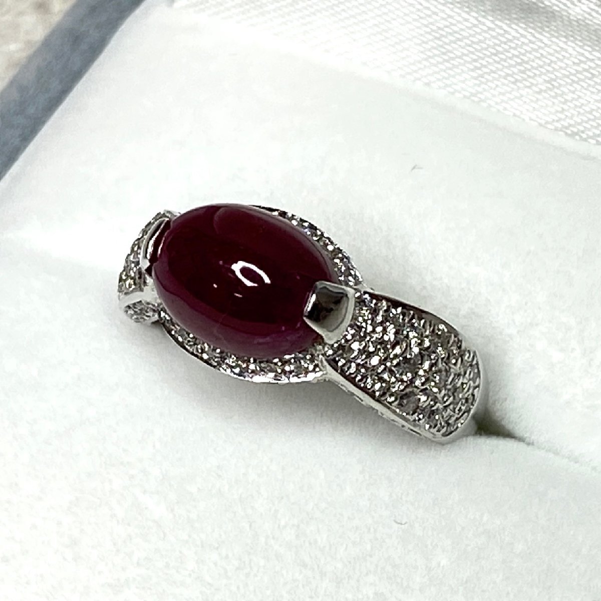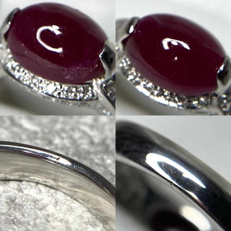 ☆【KJC】鑑別書付き Pt900(プラチナ) カボッション ルビー 3.61ct/ダイヤモンド 0.47ct リング 指輪 サイズ約11番強 | ||