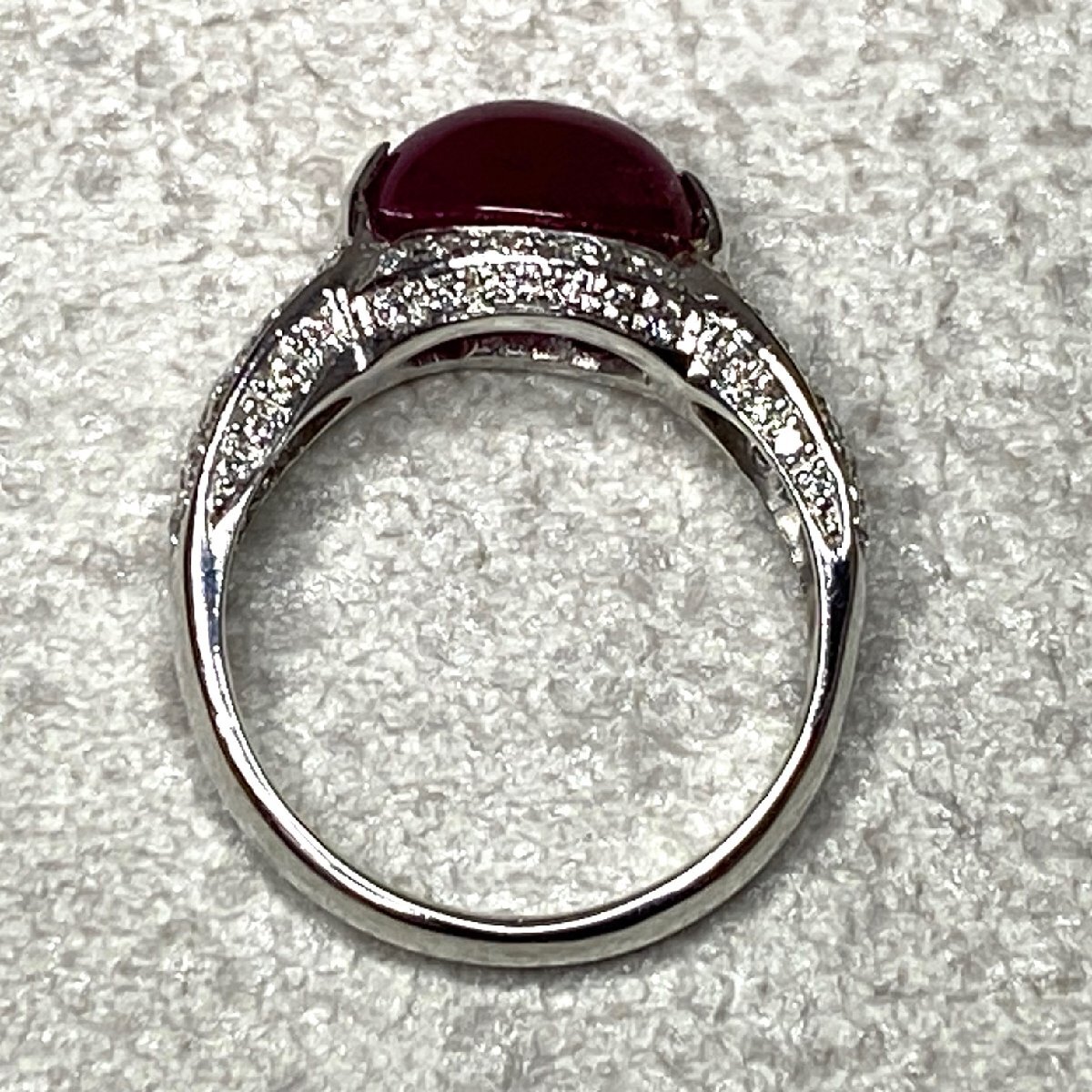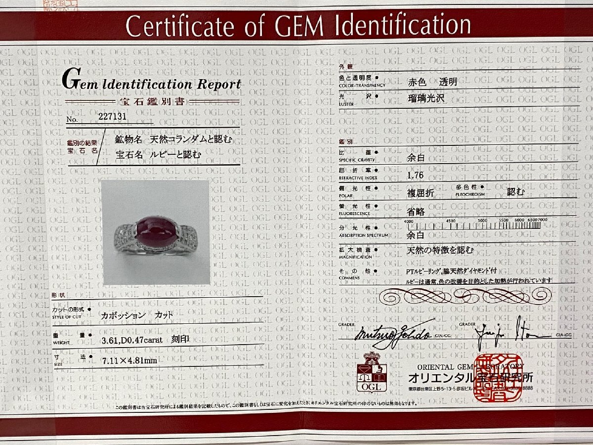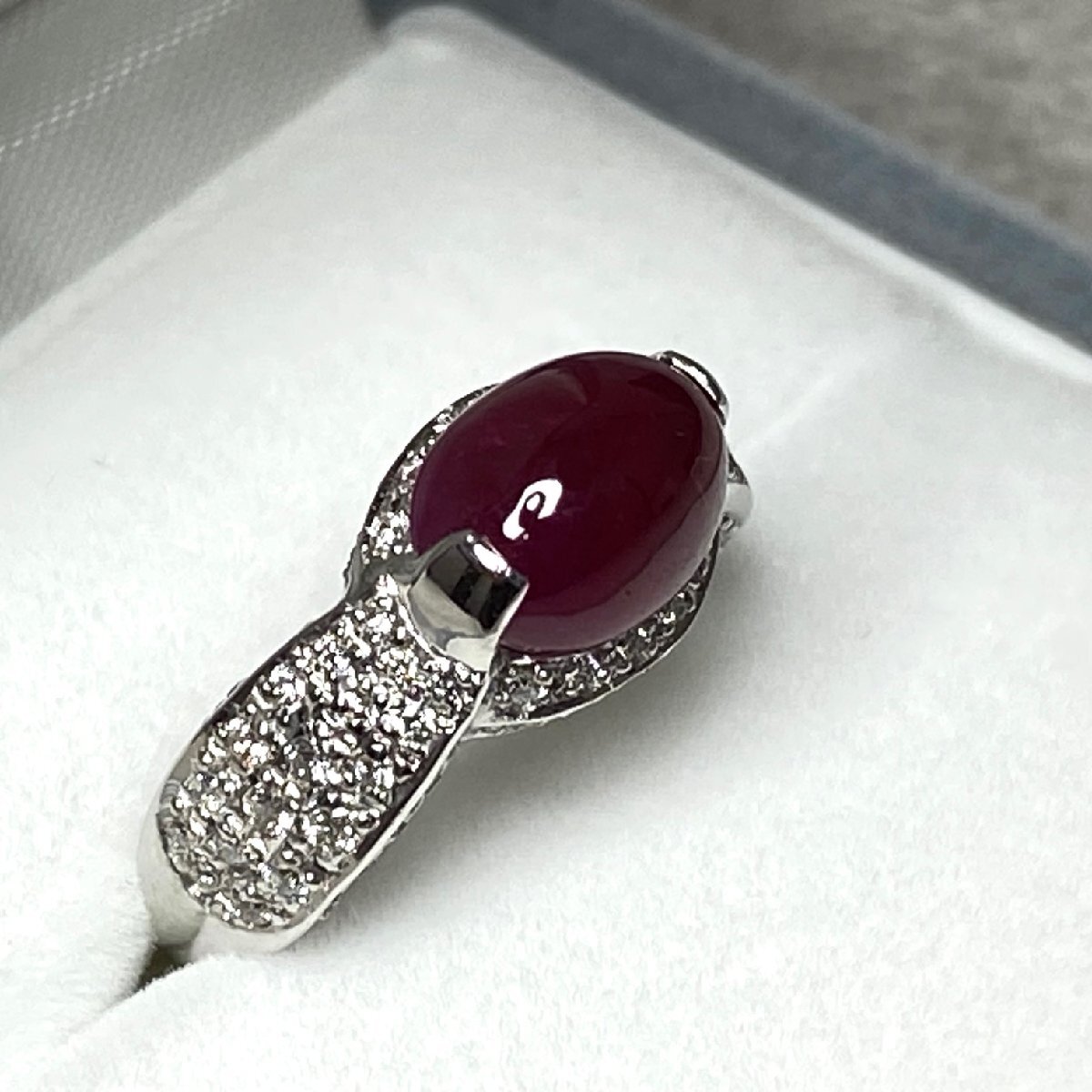 ☆【KJC】鑑別書付き Pt900(プラチナ) カボッション ルビー 3.61ct/ダイヤモンド 0.47ct リング 指輪 サイズ約11番強 | ||