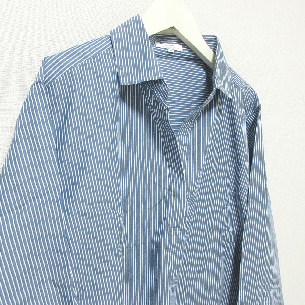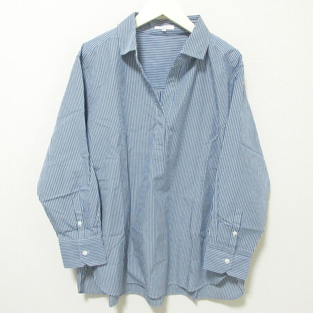美品 24SS 23区 ニジュウサンク CANCLINI カンクリーニ スキッパー シャツ 長袖 ブラウス BLWWCM0316 大きいサイズ 44 ブルー系
