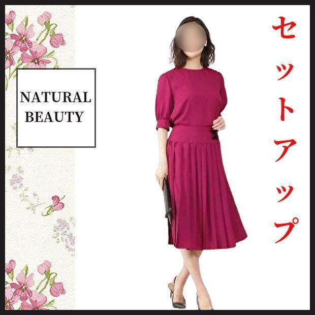 【ナチュラルビューティ】セットアップ ブラウス プリーツスカート38通勤お食事会  ナチュラルビューティ 巻きスカート風 匿名発送