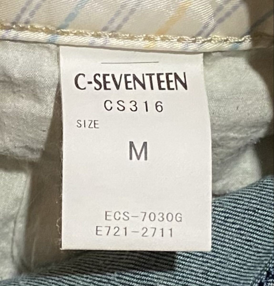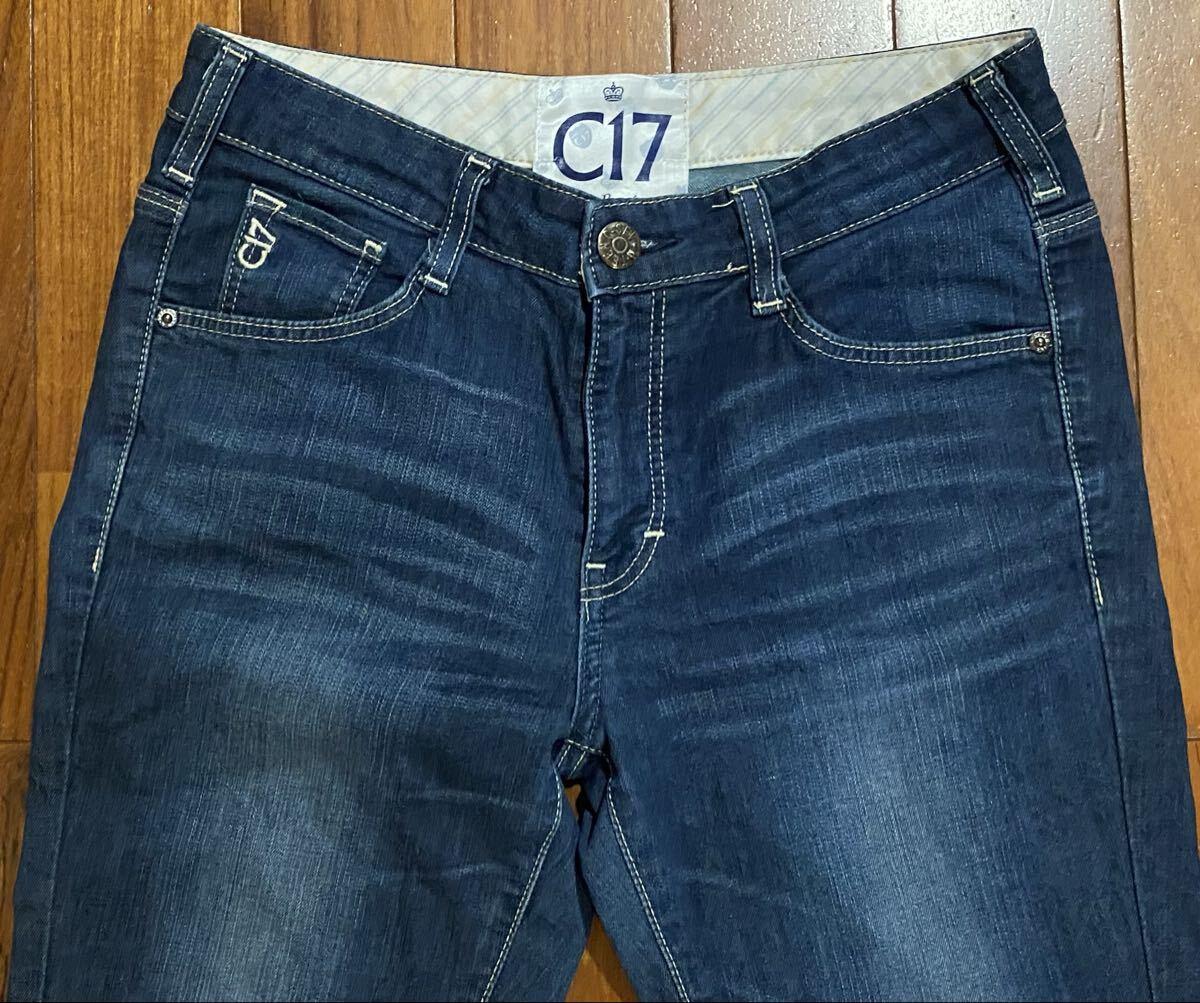 C17のストレッチ テーパード サマーデニムパンツ、CS316です。色はインディゴブルーです。USEDですが状態は良いです(10段階中8程度)。ジッパーフライ、裾はチェーンステッチです。生地はストレッチ入りで綿68%、ポリエステル20%、レーヨン11%、ポリウレタン1%です。正規品です((株)エドウィン、中国製)。サイズはMでウエストは重ねずに平置きで約71cm、ヒップ約91cm、股上約22cm、股下約71cm、股下15cmのふともも部分約46cm、裾まわり約31cm、重量約360gです。発送はゆうパケットポストになります。