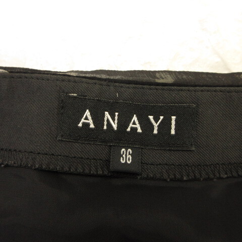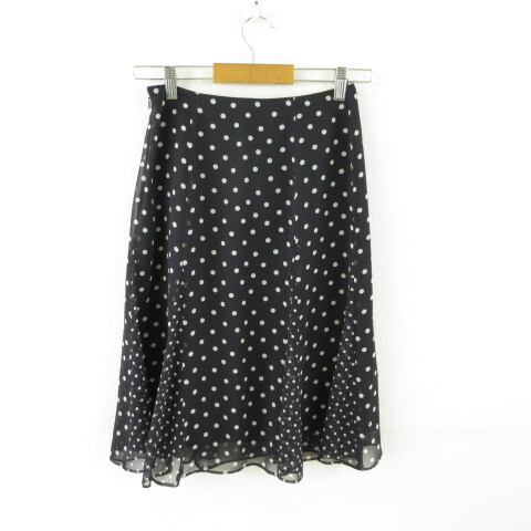 アナイ ANAYI スカート フレア ひざ丈 ドット 黒 36 *T949 レディース