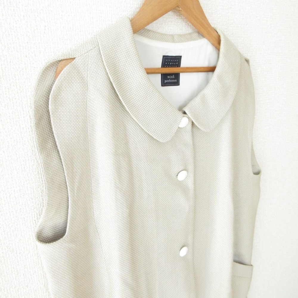 良品 mina perhonen ミナペルホネン ice&rock アイス&ロック リネン×シルク ブラウス ベスト ジレ SS2237 38 ベージュ