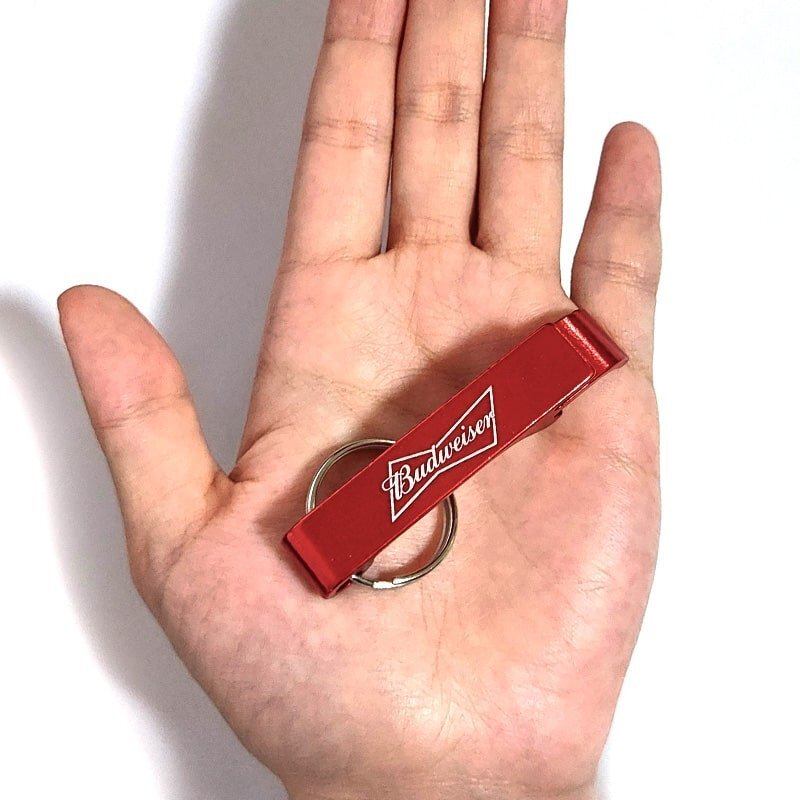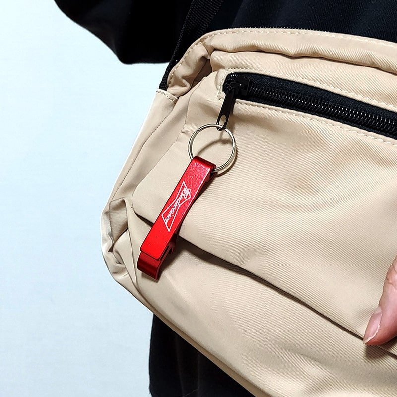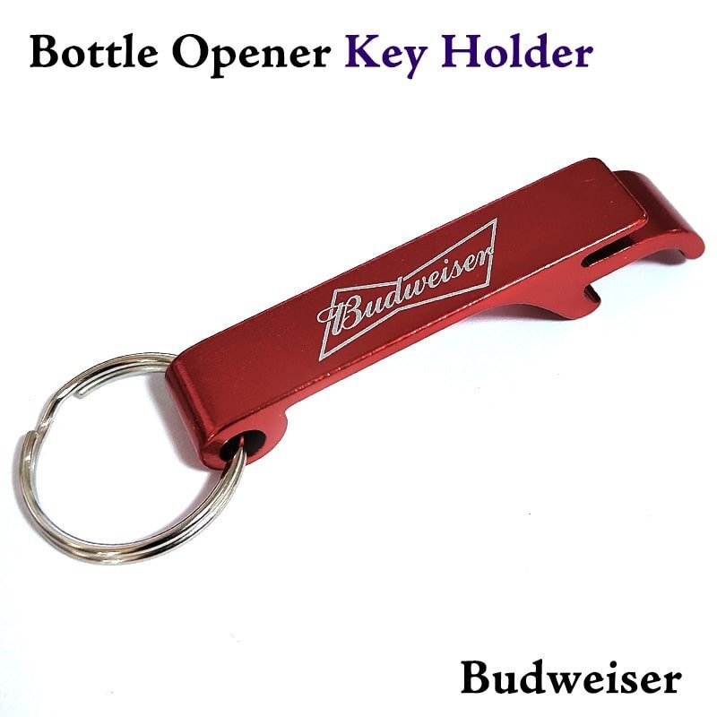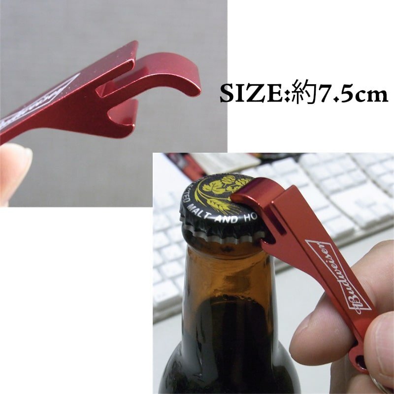 「ボトルオープナーK/H」 キーホルダー型のかっこいいボトルオープナーです! バドワイザーのロゴがデザインされています! 持ち運びに便利な小さめサイズですので、アウトドアにも最適です。 キーホルダーとしてバッグや鍵などにつけるのもおすすめです! ビール好きの方や瓶ジュースをよく飲む方へのプレゼントにもいかがでしょうか? |