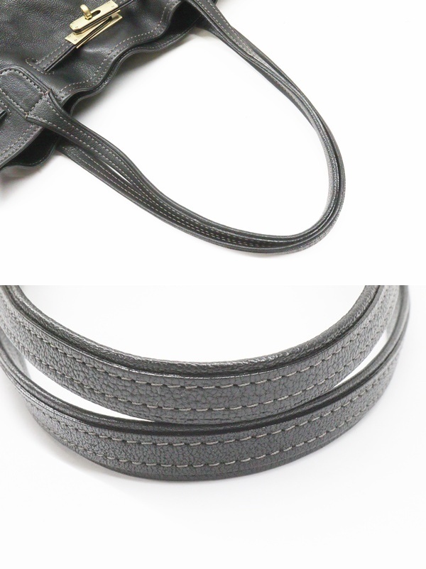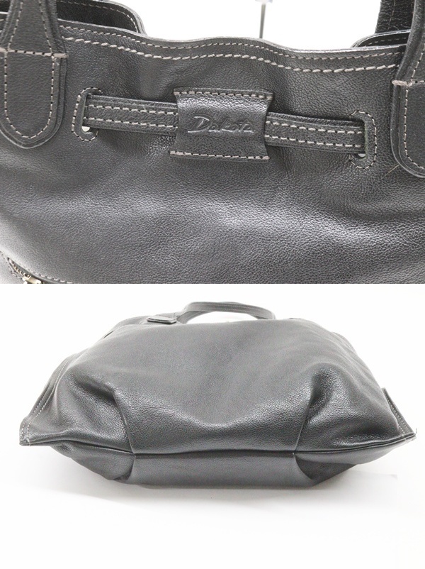 ジャンル:トートバッグ メーカー:ダコタ 型番:1033834 サイズ:縦30.5×横40(上)~32(下)×まち9㎝位 仕様 ・ファスナーポケット×1 ・ポケット×2 付属品:無し 背面下部にキズがあります。 内側は目立った汚れや破れはありません。 全体的に見て、ヨレ感は少なく、ハンドル部分もしっかりしているかと思います。 ※かるく折り畳んで発送します。 |