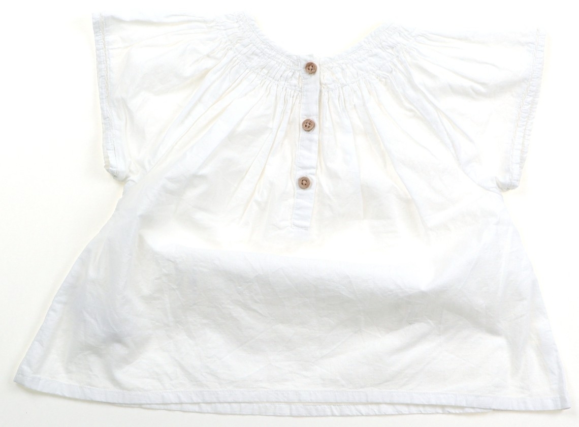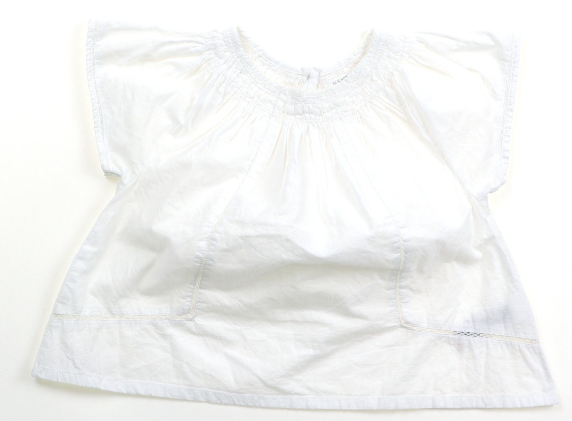 後ろボタンあきです。3-4YRS/104CM表記。部分的に薄汚れと小さい汚れがありますがまだお使いいただけそうです。