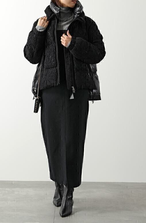 21AW モンクレール レース×ナイロン ダウン ジャケット ブラック レディース MONCLER 国内正規品 #B4