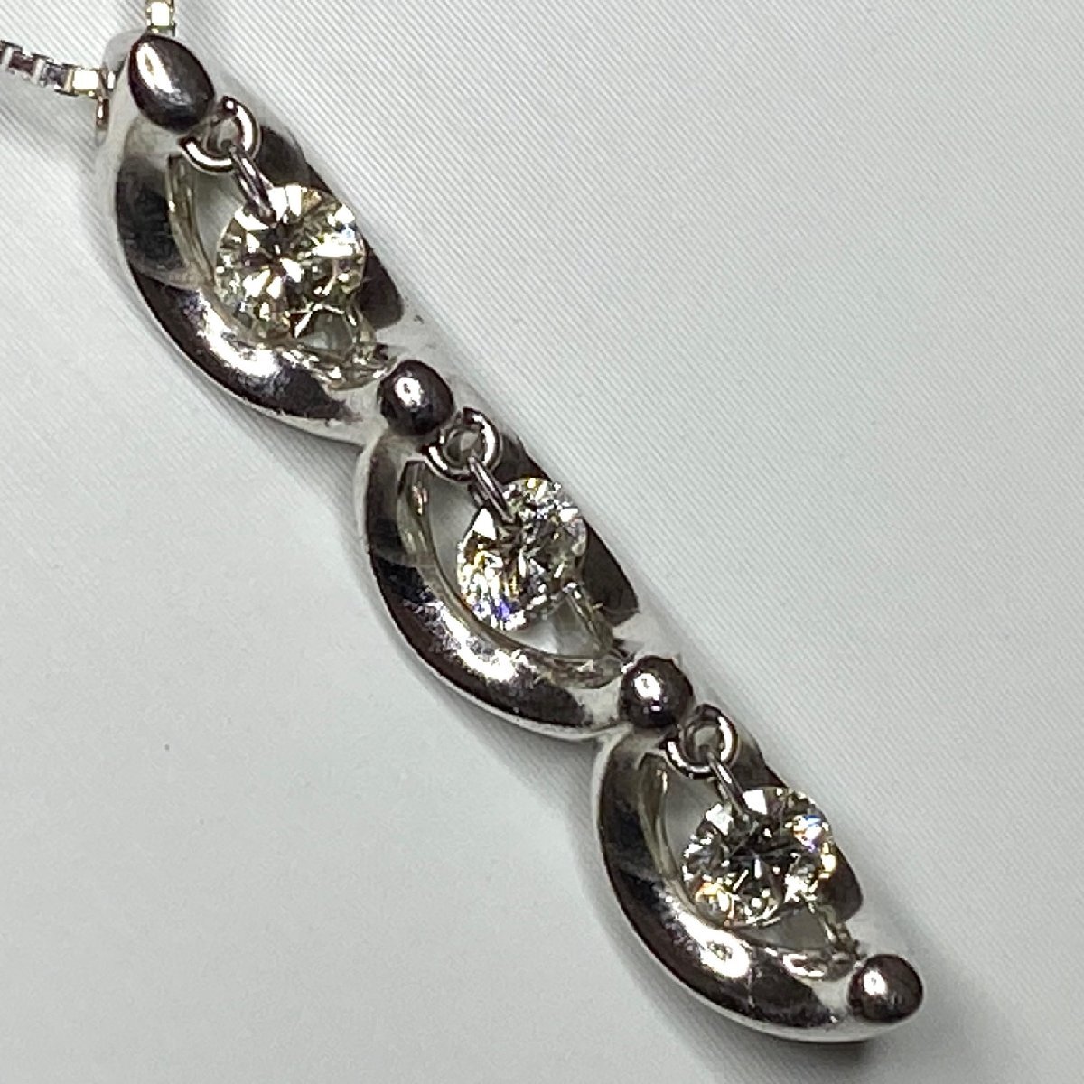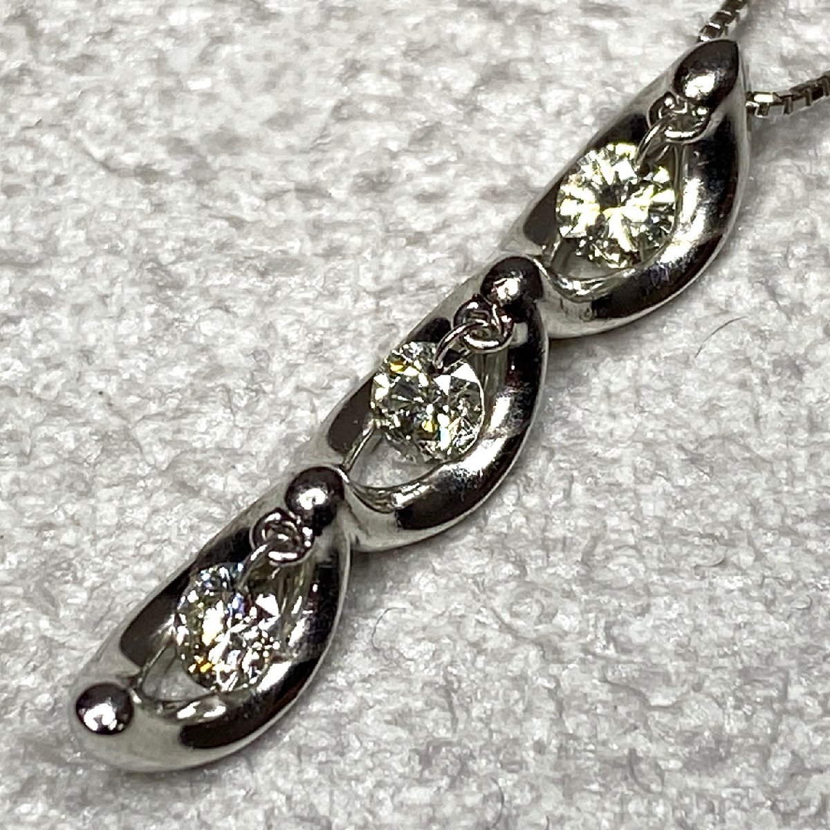 ☆【KJC】K18WG ダイヤモンド 揺れる3石 トータル 0.50ct(刻印) ネックペンダント 重量約9.0g ダイヤモンドペンダン | ||
