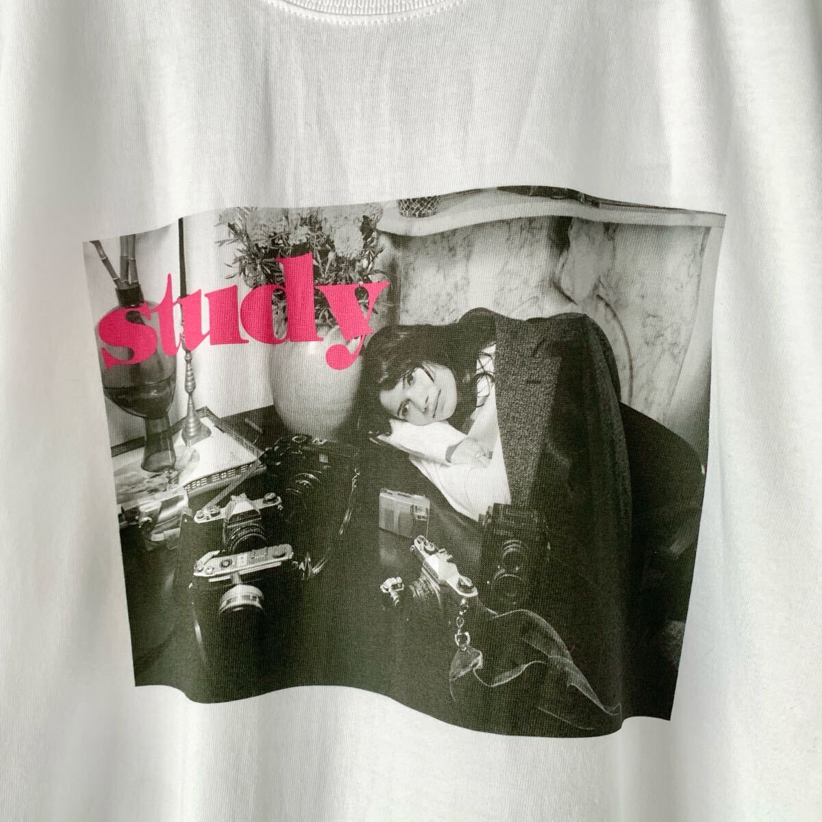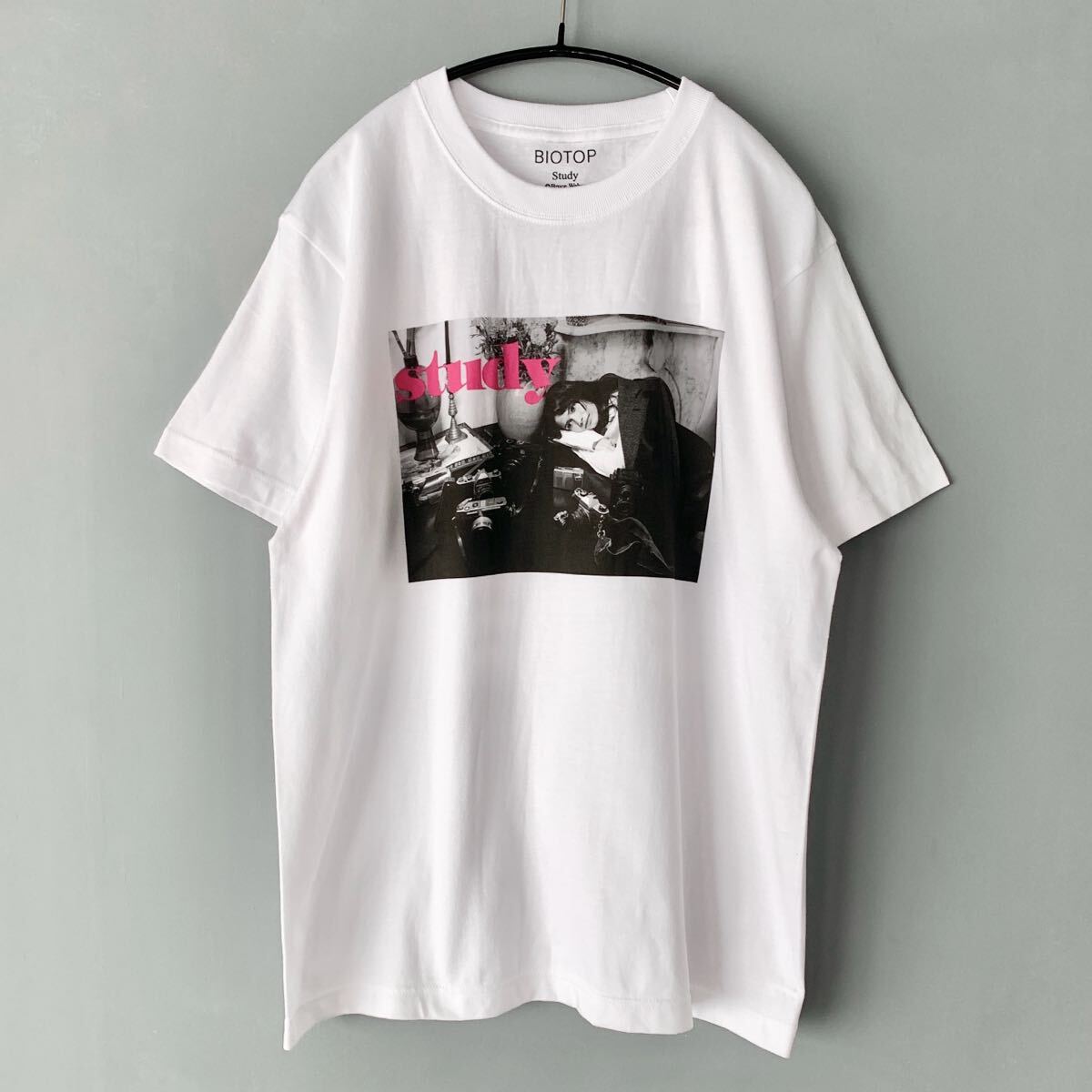 ビオトープとパリのカルチャー誌Study とのコラボTシャツです。何パターンかある中で、こちらはかのブルース・ウェバーが撮影した写真をプリントした貴重な1枚です。レディース向け1サイズの展開ですが、大きめなのでメンズでもSサイズくらいの感覚で着用可能です。
