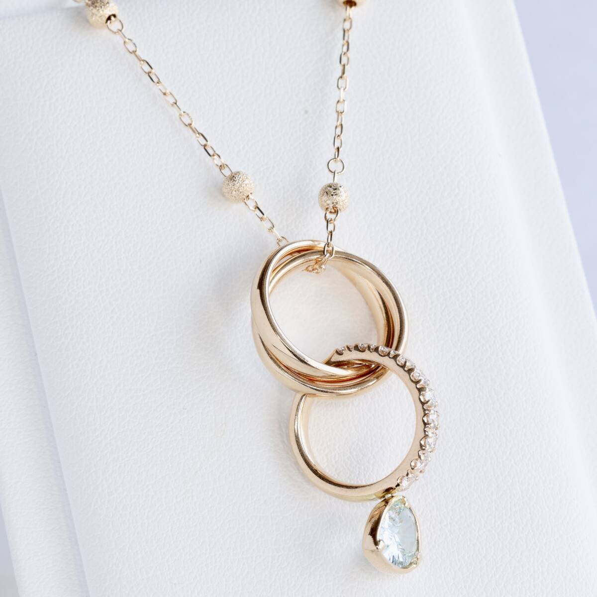 アクアマリンのパーツが上部パーツから外れた状態で入荷したため、同じデザインのトップを見本に、同じように動く形でデザインを再現して下さいと提出し、メーカー外で修理をしています。