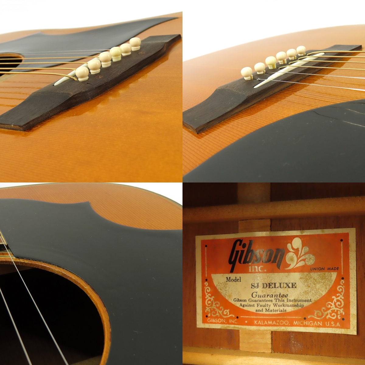 091s☆Gibson ギブソン SJ-Deluxe ナチュラル KalamaZoo アコギ アコースティックギター ※中古 □内容品:本体のみ ※画像にあるもので全てです。 □型番:SJ-Deluxe □カラー:ナチュラル □スペック ボディ表板:スプルース ボディ側板&裏板:マホガニー ネック:マホガニー 指板:ローズウッド ナット幅:約43.5mm 弦高(12f上):6弦-約3.7mm、1弦-約3.0mm シリアル:682979 □状態 フレット残約7割(押弦に伴う部分消耗がございます)、現状ネックはストレート、ロッド余裕有。 全体的に擦りキズ、打痕が多数ございます。 全体に使用に伴う擦りキズ、打痕などのダメージが多数ございますが、まだまだご使用いただける1本です。 ※画像では判別しづらいUSED品特有の薄い汚れや薄いキズ、細かいキズなどある場合があります。 ※こちらの商品は、1本限りの中古販売価格となり、同時に店頭でも販売を行わせて頂いております。 売却時の商品情報の変更は迅速を心掛けておりますが、ご注文後にすでに売却済みとなる場合、誠に恐れ入りますがご容赦ください。 ※商品の試奏・販売は岡山店のみの取り扱いとなり、岡山店以外の店舗では対応いたしかねます。予めご了承ください。 ※商品の状態は商品掲載時点のものとなります。店頭での展示・試奏等により多少状態が変化することがございます。予めご了承ください。 ※当商品は発送前に調整を行わせていただいております為、ご注文より2〜5日程、発送にお時間を頂く場合がございます。 ご了承の程宜しくお願いいたします。 |