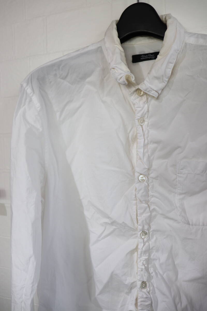 18SS 即決 UNDERCOVERISM アンダーカバーイズム UNDER COVER 背面ロゴ刺繍 縮絨加工ウールパイピング レギュラーカラーシャツ メンズ 3 白