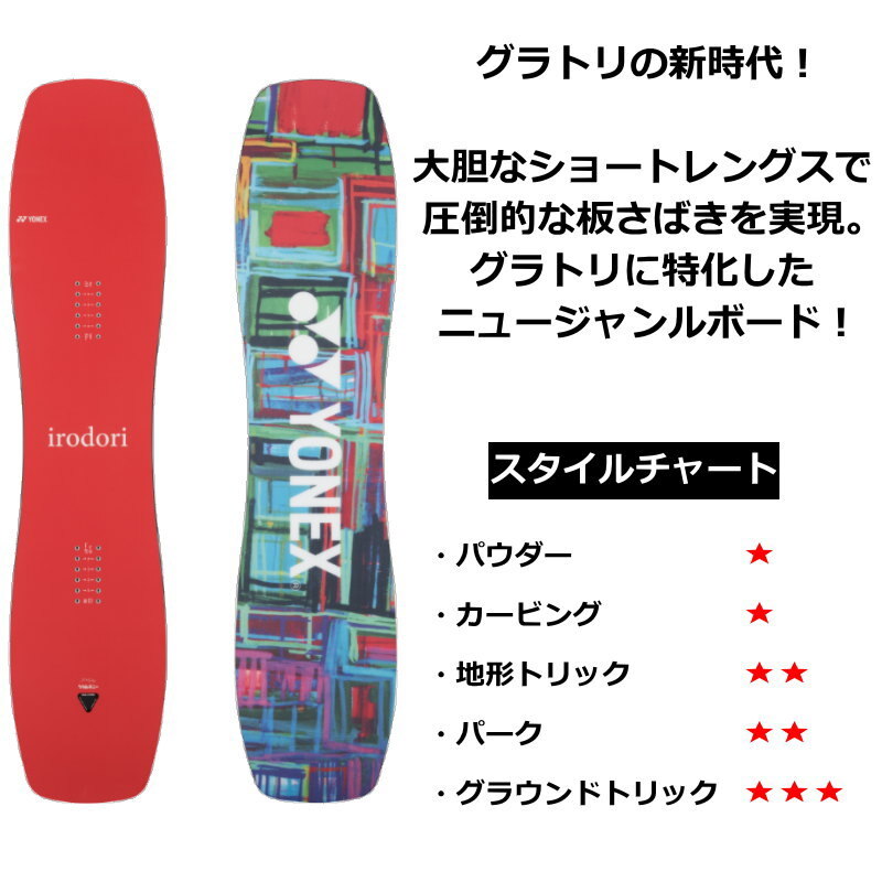 【ラスト1点】 メンズ スノーボード 板 型落ち 旧モデル 135cm YONEX IRODORI ブライトレッド ヨネックスイロドリ 23-24 グラトリ フラット