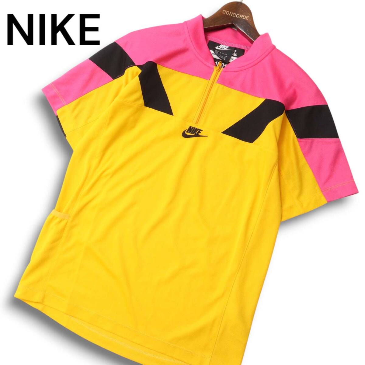NIKE ナイキ 1991 春夏 ロゴ刺繍★ パターン切替 サイクルジャージ 半袖 ハーフジップ シャツ Sz.S メンズ 自転車 サイクル