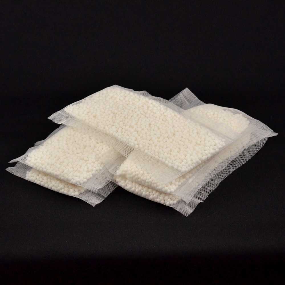 約200mlの袋が5個入っています。飼育生物の量、与える餌の量により消費のスピードは変わります。目安として、50~100リットルに対して1袋で、1ヶ月ほど効果を持続します。